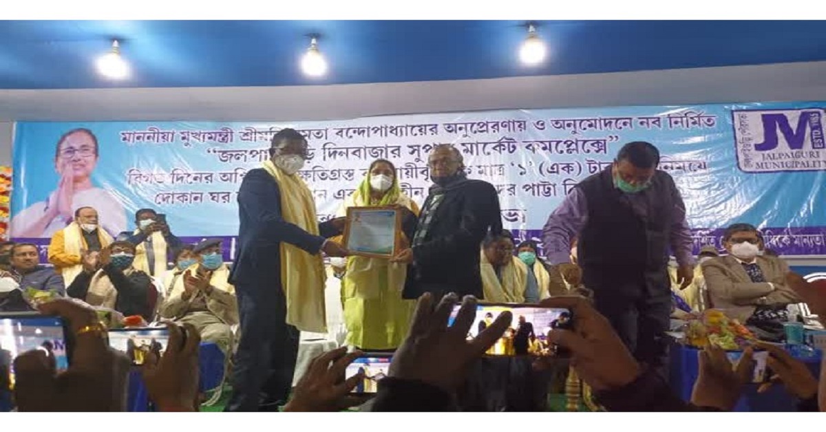 সংবাদদাতা, জলপাইগুড়ি : জলপাইগুড়ি পুরসভার উদ্যোগে দ্বিতীয় পর্যায়ে ১০০ জন ব্যবসায়ীর হাতে দিনবাজার মার্কেট কমপ্লেক্সের ঘরের দায়িত্ব তুলে দেওয়া হল। বৃহস্পতিবার পুরসভার প্রয়াস হলে এক অনুষ্ঠানে এই একশো ব্যবসায়ীর হাতে ঘরের কাগজপত্র তুলে দেওয়া হয়।