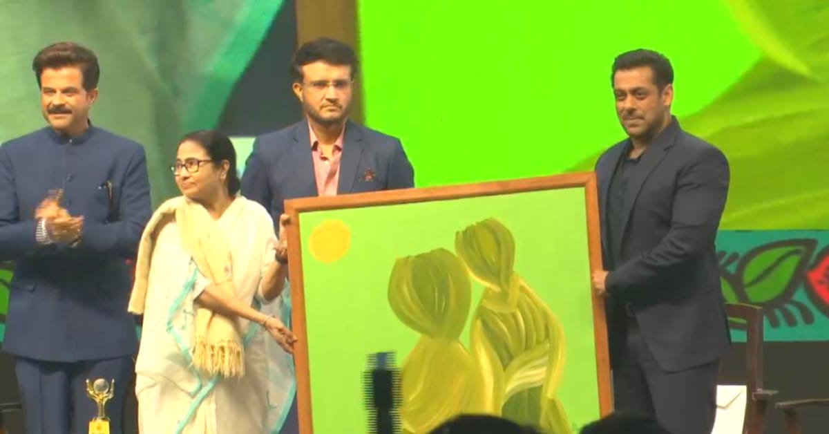 আজ শুরু হল ২৯তম কলকাতা আন্তর্জাতিক চলচ্চিত্র উৎসব (KIFF)। দেশ-বিদেশের চলচ্চিত্র জগতের তারকাদের উপস্থিতিতে বাংলার রাজ্য সঙ্গীত দিয়ে শুরু হল উদ্বোধনী অনুষ্ঠান। এবার চলচ্চিত্র উৎসবে প্রথম এলেন সলমন খান। মুখ্যমন্ত্রী মমতা বন্দ্যোপাধ্যায়ের (Mamata Banerjee) অনুরোধে তিনি এবারের চলচ্চিত্র উৎসবের উদ্বোধন করেন। সূচনায় ‘বাংলার মাটি বাংলার জল’ গানটি সমবেতভাবে গাইলেন মমতা বন্দ্যোপাধ্যায় (Mamata Banerjee), ইন্দ্রনীল সেন, শ্রীরাধা বন্দ্যোপাধ্যায়, অদিতি মুন্সি, রূপঙ্কর বাগচী, মনোময় ভট্টাচার্য, ইমন চক্রবর্তী। মুখ্যমন্ত্রীর লেখা গানে, ডোনা গঙ্গোপাধ্যায়ের পরিচালনায় নৃত্য পরিবেশন করেন দীক্ষামঞ্জরির শিল্পীরা।