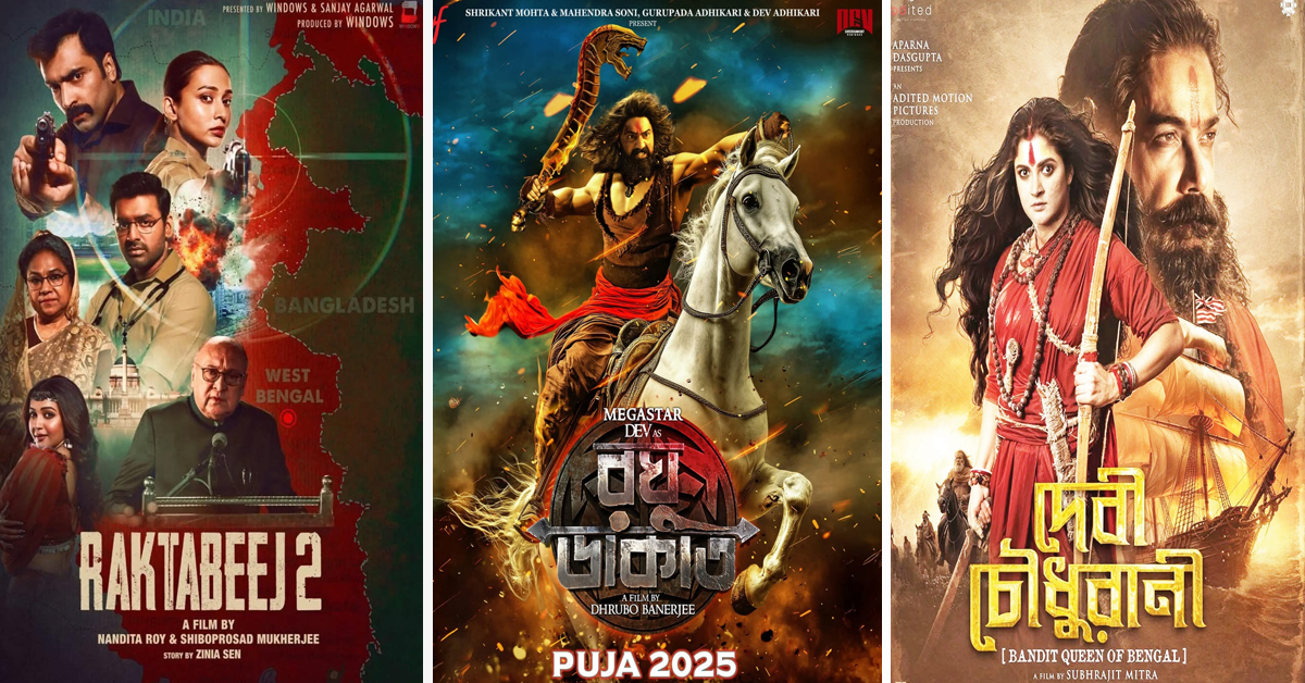 ঢাকে কাঠি পড়তে আর মাত্র ক’দিন। সেই সঙ্গে টলিপাড়াতেও জোরকদমে চলছে প্রস্তুতি। সেখানে ছবির মহোৎসব। মুক্তি পাচ্ছে তিন-তিনটে ব্লকবাস্টার্স ছবি। হবে টক্কর। কে জিতবে দর্শকমন,বক্স অফিস যাবে কার দখলে। কারণ তিনটে ছবিই হেভি ওয়েট এবং বিগ বাজেটের। এর মধ্যে দুটো ঐতিহাসিক কাহিনি-নির্ভর মহাকাব্যিক ছবি। দেব এন্টারটেইনমেন্ট ভেঞ্চারের ‘রঘু ডাকাত’ (Raghu Dakat) এবং প্রসেনজিৎ চট্টোপাধ্যায় অভিনীত ‘দেবী চৌধুরাণী’, আর তিন নম্বরটি হল উইনডোজ প্রডাকশনের নন্দিতা-শিবপ্রসাদের অ্যাকশন প্যাক ছবি ‘রক্তবীজ ২’।