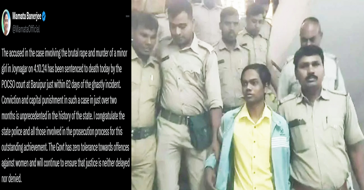 এক্স হ্যান্ডেলে মুখ্যমন্ত্রী লিখেছেন, “২০২৪ সালের অক্টোবরের ৪ তারিখে জয়নগরে নাবালিকাকে নৃশংস ধর্ষণ ও হত্যার সঙ্গে জড়িত মামলার অভিযুক্তকে আজ বারুইপুরের পকসো আদালত ৬২ দিনের মধ্যে মৃত্যুদণ্ড দিয়েছে৷ মাত্র দু’মাসের মধ্যে এমন একটি মামলায় দোষী সাব্যস্ত হওয়া এবং মৃত্যুদণ্ড দেওয়া রাষ্ট্রের ইতিহাসে নজিরবিহীন। এই অসামান্য কৃতিত্বের জন্য আমি রাজ্য পুলিশ এবং প্রসিকিউশন প্রক্রিয়ার সঙ্গে জড়িত সকলকে অভিনন্দন জানাই। মহিলাদের বিরুদ্ধে অপরাধের প্রতি সরকারের শূন্য সহনশীলতা রয়েছে। এবং ন্যায়বিচার যাতে দ্রুত হয় তা নিশ্চিত করাই লক্ষ্য।”