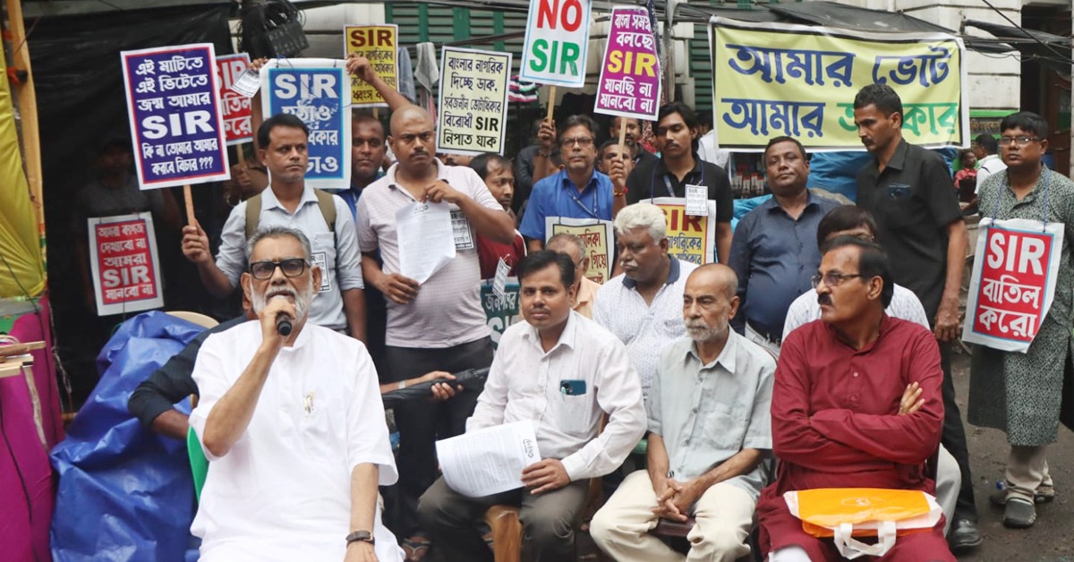 প্রতিবেদন : ছাব্বিশে বাংলায় বিধানসভা নির্বাচন। তার আগে বিহারে বিধানসভা নির্বাচন। কিন্তু নির্বাচনের মুখে দাঁড়িয়ে এসআইআরের নামে যেভাবে প্রকৃত ভোটারদের অধিকার কেড়ে নিতে চাইছে নির্বাচন কমিশন তার বিরুদ্ধে সরব হল দেশবাঁচাও গণমঞ্চ (Desh Bachao gano mancha)। বুধবার, কলকাতায় ইলেকশন কমিশনের সিইও দফতরের সামনে এক প্রতিবাদ সভার আয়োজন করেছিল গণমঞ্চ (Desh Bachao gano mancha)। উপস্থিত ছিলেন প্রাক্তন মন্ত্রী পূর্ণেন্দু বসু, সমাজকর্মী সুশান রায়, চিত্র পরিচালক সুদেষ্ণা রায়, সমাজকর্মী বাসুদেব ঘটক, সাংবাদিক রন্তিদেব সেনগুপ্ত, সুমন ভট্টাচার্য, গায়ক সৈকত মিত্র, নাজমুল হক, অমিত কালী, অভিনেতা রাহুল চক্রবর্তী, ভিভান ঘোষ, সোমা চক্রবর্তী, অধ্যাপক কুন্তল ঘোষ, দীপঙ্কর দে, জাতীয় বাংলা সম্মেলনের সভাপতি সিদ্ধব্রত দাসের মতো বিশিষ্টরা। সভায় বক্তারা স্পষ্ট বলেন, বাংলার একজন বৈধ ভোটারকে কোনও ভাবে বাদ দেওয়া চলবে না। তাঁদের হেনস্থাও করা যাবে না। ২৪-এর লোকসভা ভোটে যেসব মানুষের ভোটে কেন্দ্রে সরকার গঠিত হয়েছে, সেই ভোটার তালিকাকেই বহাল রাখতে হবে বিধানসভা নির্বাচনেও। ভোটার তালিকা সংশোধনের নামে ভিনরাজ্যের যেসব নাগরিকের নাম পশ্চিমবঙ্গের ভোটার তালিকায় ঢোকানো হয়েছে, সেসব নাম বাদ দিতে হবে। দেশ বাঁচাও গণমঞ্চের প্রতিনিধিরা প্রশ্ন তোলেন, কেন ২০০২ সালের ভোটার তালিকায় যাদের নাম রয়েছে তারাই শুধু ভোট দিতে পারবে? তার পরবর্তী ভোটার তালিকায় থাকা ভোটারদের নাম কোন নথির ভিত্তিতে বাদ গেল তার জবাব কমিশনকে দিতে হবে। যদি কোনও ব্যক্তিকে অবৈধ ভোটার হিসেবে গণ্য করা হয়, তাহলে তাদের সন্তানদের কি এই দেশের নাগরিক হিসেবে গণ্য করা হবে না? তাঁরা অভিযোগ করেন, বিহারের এমন বহু নাগরিকের শুধুমাত্র বাড়িতে না থাকার কারণে তালিকা থেকে নাম বাদ দেওয়া হয়েছে। নির্বাচন কমিশনের কাছ থেকে এটা আশা করা যায় না।