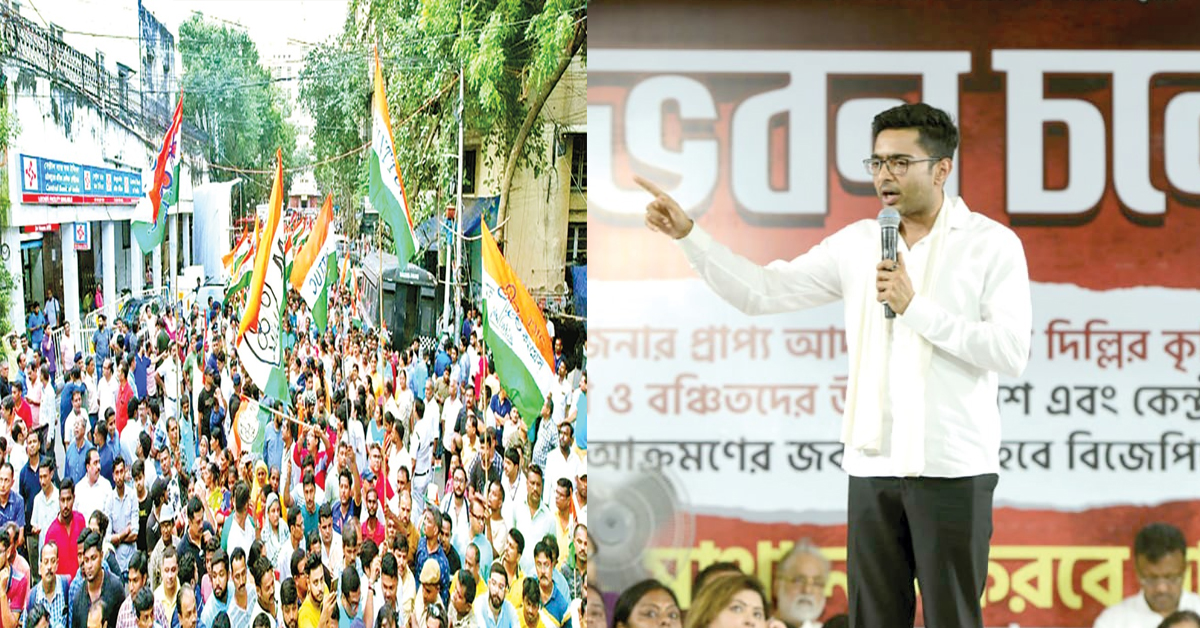 প্রতিবেদন : অভিষেক বন্দ্যোপাধ্যায়ের নেতৃত্বে তৃণমূল কংগ্রেসের (TMC Agitation) আন্দোলনের চাপে পড়ে এবার ঐক্য বৈঠকের প্রস্তাব পাঠালেন রাজ্যপাল সি ভি আনন্দ বোস। প্রস্তাবে সাড়া দিয়ে দূত পাঠাচ্ছেন তৃণমূল শীর্ষ নেতৃত্ব। আজ, শনিবার দলের বার্তা নিয়ে সাংসদ কল্যাণ বন্দ্যোপাধ্যায়, মহুয়া মৈত্র ও পঞ্চায়েতমন্ত্রী প্রদীপ মজুমদার দার্জিলিং যাবেন। দিল্লি থেকে আজই দার্জিলিংয়ে পৌঁছচ্ছেন রাজ্যপালও। শনিবার বিকেল সাড়ে পাঁচটায় দার্জিলিং রাজভবনে তৃণমূলের দূত সদস্যদের মুখোমুখি হবেন তিনি। শুক্রবার সন্ধ্যায় রাজভবনের ধরনা মঞ্চ থেকে এই ঘোষণা করে অভিষেক বলেন, আমরা রাজ্যপাল পদটিকে সম্মান করি তাই তাঁর পাঠানো প্রস্তাবে সাড়া দিয়ে ৭০০ কিলোমিটার দূরে দূত পাঠাচ্ছি। কিন্তু ৩০ জনের মূল ডেলিগেশন টিম কলকাতায় রাজভবনে যাবে আমার নেতৃত্বে। সঙ্গে পঞ্চাশ লক্ষ চিঠি। এরপরই অভিষেকের হুঁশিয়ারি, রাজ্যপাল যদি মনে করেন তিনি আমাদের সঙ্গে এখানে দেখা করবেন না, এদিক-ওদিক করে বাইরে থাকবেন, তবে আমিও বলে রাখছি, যতদিন না তিনি রাজভবনে আমাদের মূল ডেলিগেশন টিমের সঙ্গে দেখা করছেন ততদিন আমরা এখানে ধরনা চালিয়ে যাব। তাঁর সংযোজন, রাজ্যপাল যদি ভেবে থাকেন এভাবে লুকোচুরি খেলে দুর্গাপুজো পার করে দেবেন, ভুল করছেন! পুজোর সময়ও আমি এখানেই ধরনা মঞ্চে বসে থাকব। সপ্তমী-অষ্টমীতেও একাই বসে থাকব। কাউকে এখানে আসতে হবে না। শুধু এই লড়াইয়ে পাশে থাকবেন। যতদিন না বঞ্চিতদের মুখে হাসি ফোটাতে পারছি ততদিন আমিও হাসব না, আপনাদের নতুন জামাকাপড় দিতে না পারলে আমিও নতুন জামাকাপড় পরব না। সাফ কথা দলের সর্বভারতীয় সাধারণ সম্পাদকের। বৃহস্পতিবার থেকেই অভিষেক ধরনা মঞ্চে রয়েছেন। শুক্রবার দিনভর মঞ্চে গান-বক্তৃতা সহ নানা কর্মসূচি হয়েছে। সন্ধ্যায় বক্তব্য রাখতে গিয়ে রাজ্যপাল ও বিজেপিকে তীব্র আক্রমণ করেন অভিষেক। তাঁর কথায়, রাজ্যপাল যদি দুটি ব্যাখ্যা আমাদের দিয়ে দেন তবে আমরা ধরনা তুলে নেব। ১. কুড়ি লক্ষ মানুষকে দিয়ে কেন্দ্রীয় সরকার কাজ করিয়েছে কি না? ২. যদি কাজ করিয়ে থাকে তবে কোন আইনে দু’বছর ধরে তাদের টাকা আটকে রেখেছে কেন্দ্র?