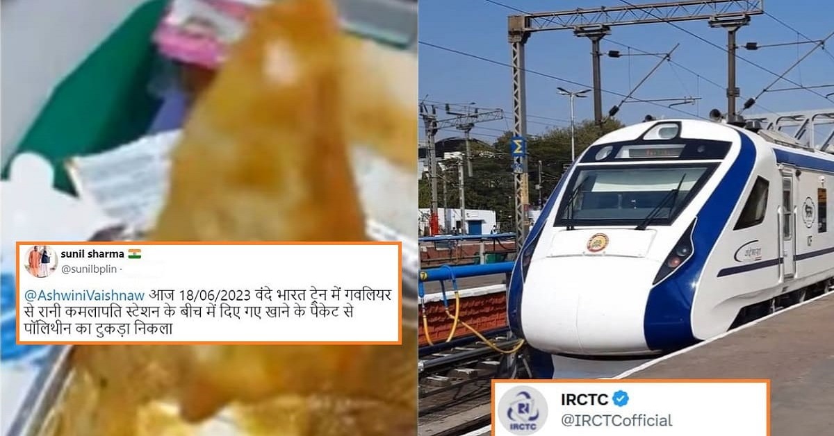 বন্দে ভারতের খাবারের মেনুতে পলিথিনের টুকরো পাওয়ার ঘটনার ভিডিও ভাইরাল হতেই শোরগোল পড়ে যায়। লিখিত অভিযোগ করা হয়েছিল। পনিরের ডিশে ৪X৪ সাইজের একটি পলিথিনের টুকরো ছিল। ঝাঁসি স্টেশন পেরোনোর পরে রাত আটটা নাগাদ এই রাতের খাবার দেওয়া হয়েছিল। রেলওয়ে সেবা টুইটের উত্তর দিয়েছিল।