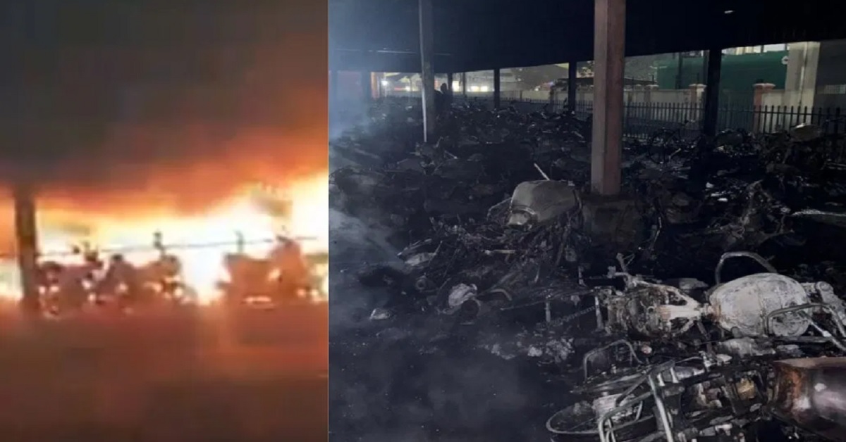 বারাণসী ক্যান্টনমেন্ট রেলওয়ে স্টেশনে (Varanasi Cantonment Railway station) ভয়াবহ আগুন। আজ, শনিবার ভয়াবহ আগুন লাগল উত্তর প্রদেশের জনবহুল স্টেশনে। এদিনের এই ঘটনায় কমপক্ষে ২০০ বাইক পুড়ে গিয়েছে। শেষ পাওয়া খবর অনুযায়ী, কোনও মানুষের হতাহতের খবর নেই। শনিবার রাত ৩টে নাগাদ বারাণসীর ক্যান্টনমেন্ট স্টেশনে এই আগুন লাগে বলে খবর। বিধ্বংসী আগুনে নিমেষের মধ্যেই পুড়ে ছাই হয়ে যায় সেখানে রাখা সমস্ত বাইক। কমপক্ষে দুই ঘণ্টা ধরে দাউদাউ করে জ্বলে বারাণসী রেলস্টেশনের বাইরের অংশ। জানা গিয়েছে, বিশেষ করে রেলওয়ে কর্মীদের বাইক রাখা ছিল ওখানে। আগুন লাগার ফলে একের পর এক বাইক জ্বলতে শুরু করে।
