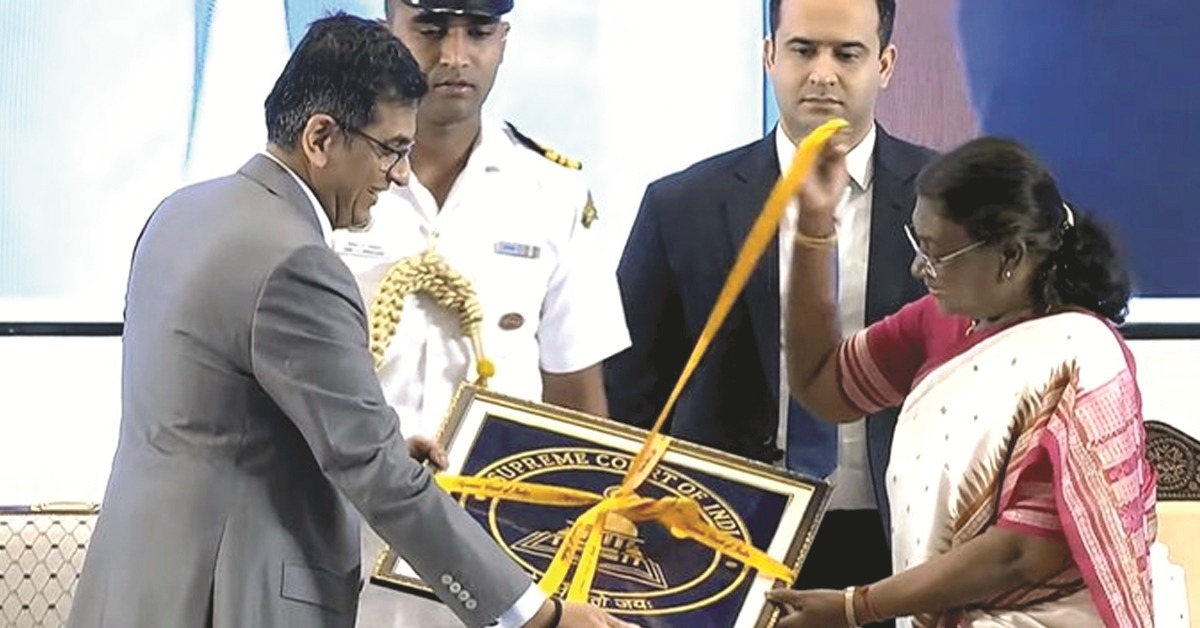 রবিবার রাষ্ট্রপতির হাতে উদ্বোধন হল সুপ্রিম কোর্টের পতাকার। পতাকায় রয়েছে সুপ্রিম কোর্টের চিহ্ন। সেই চিহ্নে রয়েছে অশোক চক্র, সুপ্রিম কোর্ট ও ভারতের সংবিধানের ছবি। রাষ্ট্রপতির পাশাপাশি এই উদ্বোধনী অনুষ্ঠানে উপস্থিত ছিলেন কেন্দ্রীয় আইনমন্ত্রী অর্জুন রাম মেঘাওয়াল।