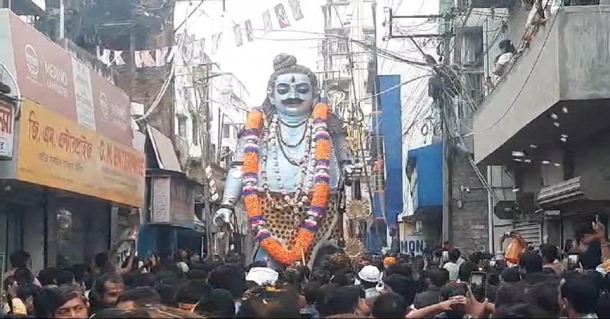 সংবাদদাতা, জঙ্গিপুর : রবিবার ভৈরবের বিসর্জন ঘিরে উন্মাদনার চেনা ছবি বহরমপুরে। ৮ থেকে ৮০ সকলেই অংশ নিলেন শোভাযাত্রায়। রবিবার ছুটির দিন দুপুরে বহরমপুরে ঐতিহ্যবাহী ভৈরবতলার বড় ভৈরবের শোভাযাত্রা বের হয়। ঢাকের তালে ও ডিজের তাঁকে শোভাযাত্রা যেন জনজোয়ারে রূপ পায়। রাস্তার ধারে হাজার হাজার দর্শনার্থী ভিড় করেন ভৈরব দর্শনে। শহর পরিক্রমা করে সন্ধ্যায় ভাগীরথীর ঘাটে বিসর্জন হবে ভৈরবে। তারপর আবার এক বছরের অপেক্ষা।