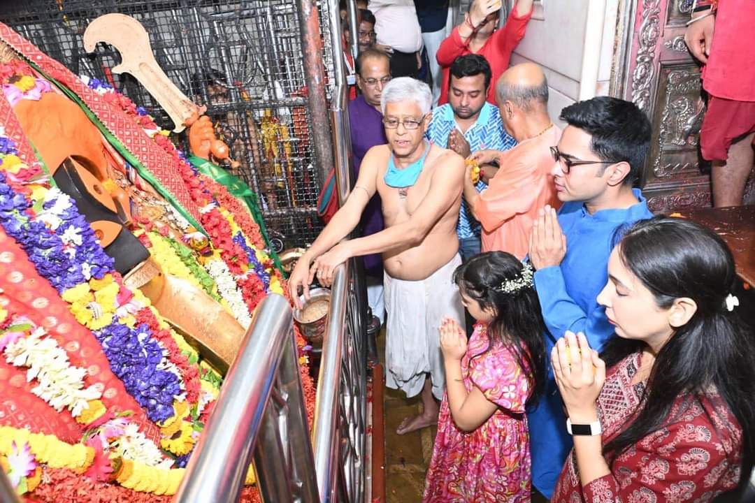 বাংলা নববর্ষের প্রথম দিনে সপরিবারে কালীঘাট মন্দিরে পুজো দিলেন তৃণমূল কংগ্রেসের সর্বভারতীয় সাধারণ সম্পাদক অভিষেক বন্দ্যোপাধ্যায়। নিজের হাতে কালী মায়ের আরতি করেন অভিষেক বন্দ্যোপাধ্যায় (Abhishek Banerjee)।