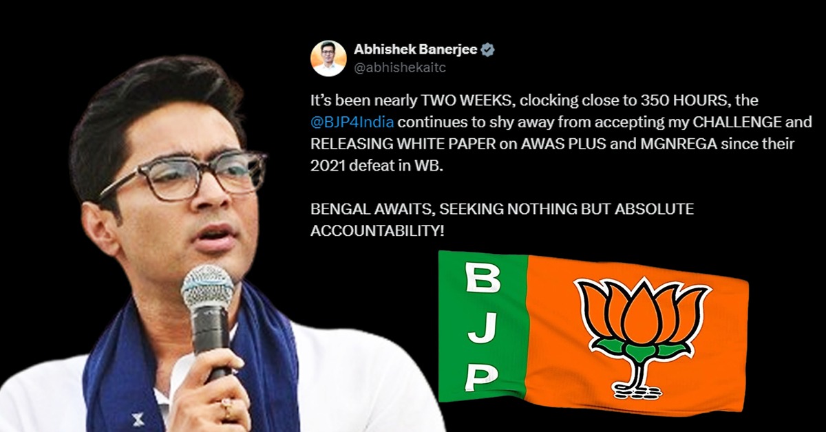 নিজের এক্স হ্যান্ডেলে মোক্ষম খোঁচা দিয়ে অভিষেক (Abhishek Banerjee) লেখেন, “প্রায় দুই সপ্তাহ হয়ে গিয়েছে, ৩৫০ ঘণ্টার কাছাকাছি, বিজেপি এখনও আমার চ্যালেঞ্জ গ্রহণ করতে লজ্জা পাচ্ছে। বাংলায় ২০২১-এ পরাজয়ের পর থেকে আবাস প্লাস এবং MGNREGA-তে কত টাকা দিয়েছে সেই শ্বেতপত্র প্রকাশ করা থেকে পিছিয়ে যাচ্ছে। বাংলা প্রকৃত সত্যে জানার অপেক্ষায় রয়েছে!”