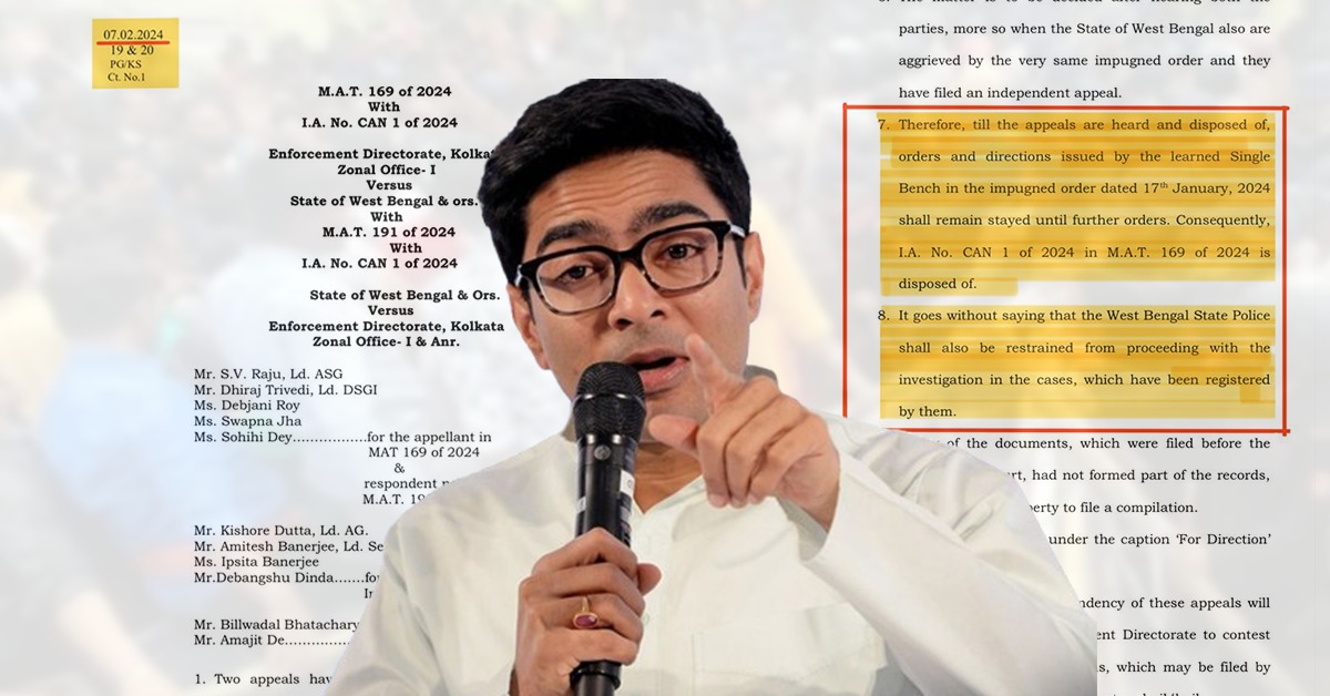 গত ৮ ফেব্রুয়ারি থেকেই সন্দেশখালির তৃণমূল নেতা শাহজাহান শেখ-সহ তাঁর অনুগামীদের গ্রেফতারির দাবিতে সন্দেশখালির মানুষ সরব হয়। বিক্ষোভ ক্রমশ বাড়তে থাকে। বিরোধীরা সেই সময়ে শাহজাহানকে গ্রেফতারি নিয়ে পুলিশি নিস্ক্রিয়তার অভিযোগও তোলেন। অভিষেক লিখেছেন, ‘পুলিশের উপর জারি হওয়া ওই স্থগিতাদেশেরই সম্পূর্ণ সদ্ব্যবহার করেছে বিজেপি এবং বাংলা বিরোধী কিছু গণমাধ্যম।’