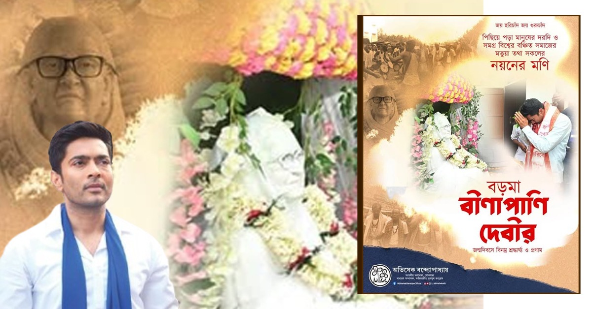 মতুয়া সমাজের বড়মা বীণাপাণি দেবীর জন্ম দিবসে তাঁকে শ্রদ্ধার্ঘ্য জানালেন তৃণমূল কংগ্রেসের সর্বভারতীয় সাধারণ সম্পাদক অভিষেক বন্দ্যোপাধ্যায় (Abhishek Bandyopadhyay)।