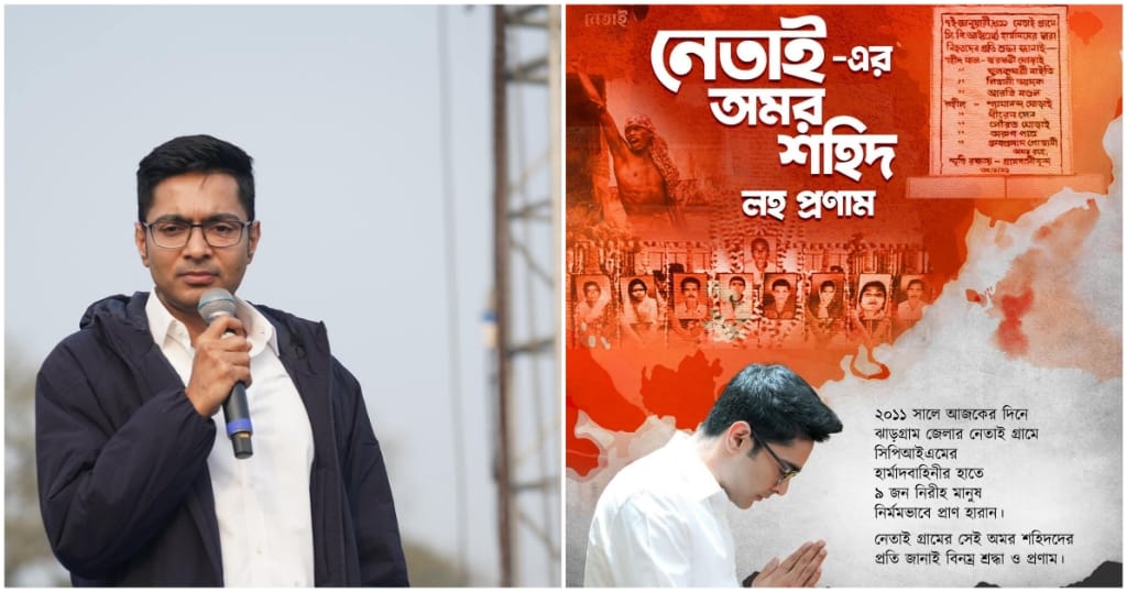 ২০১১ সালের বিধানসভা ভোটের আগে সিঙ্গুর, নন্দিগ্রাম, মমতা বন্দ্যোপাধ্যায়ের আন্দোলন, মাওবাদী সমস্যা নিয়ে জেরবার ৩৫ বছরের বাম সরকার। নেতাই হত্যাকাণ্ড সেই বুদ্ধদেব ভট্টাচর্য সরকারের কফিনে শেষ পরেরেকটা পুঁতে দিয়েছিল। গুলি চালিয়ে ৯ জন গ্রামবাসীকে হত্যার অভিযোগ উঠেছিল সিপিএম-এর বিরুদ্ধে। আজ সেই শহিদদের সোশ্যাল হ্যান্ডেলে শ্রদ্ধা জানালেন তৃণমূল কংগ্রেসের সর্বভারতীয় সাধারণ সম্পাদক অভিষেক বন্দ্যোপাধ্যায় (Abhishek Banerjee)। তিনি লেখেন, ”নেতাই এর অমর শহিদদের প্রণাম। ২০১১ সালে আজকের দিনে ঝাড়গ্রাম জেলার নেতাই গ্রামে সিপিএমের হার্মাদবাহিনীর হাতে ৯ জন নিরীহ মানুষ নির্মমভাবে প্রাণ হারান। নেতাই গ্রামের সেই অমর শহিদদের প্রতি জানাই বিনম্র শ্রদ্ধা ও প্রণাম।”