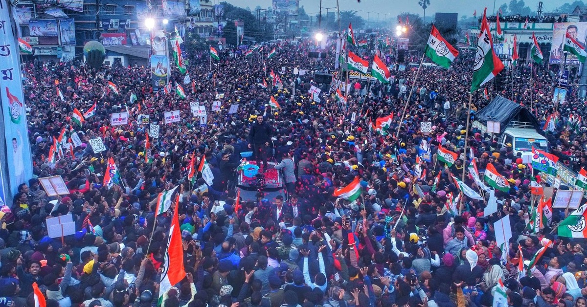 মণীশ কীর্তনিয়া, ইটাহার: উত্তর ও দক্ষিণ দিনাজপুর মিলিয়ে এবার বিজেপিকে ১৫-০ শূন্য করতে হবে। আর ইটাহার সবচেয়ে বেশি লিড দেবে। আমার আজ ২০২৩ সালের নবজোয়ারের কথা মনে পড়ছে। সেই বছরের মে মাসে আমি এখানে এই রাস্তা দিয়ে নবজোয়ার করেছিলাম। তারপর পঞ্চায়েতের জয় দেখেছিলেন। লোকসভা জয়ের খুঁটিপুজো করেছিলাম। আজ ২৬ সালের জয়ের খুঁটিপুজো করলাম। বুধবার ইটাহারের রোড শোয়ে জনসুনামির মাঝে দাঁড়িয়ে বলে দিলেন অভিষেক বন্দ্যোপাধ্যায় (Abhishek Banerjee)। ‘আবার জিতবে বাংলা’ কর্মসূচির অঙ্গ হিসেবে এদিন ইটাহরে রোড শো করেন তিনি। বালুরঘাটের কর্মসূচি সেরে ইটাহারে ঢোকেন তৃণমূলের সর্বভারতীয় সাধারণ সম্পাদক। কিন্তু তার অনেক আগে থেকেই মানুষ ভিড় জমাতে শুরু করেছিলেন। অভিষেক আসার পর তা জনসুনামিতে পরিণত হয়। ক্যারাভানে না উঠে নিজের গাড়ির ওপরই দাঁড়িয়ে পড়েন তিনি। এরপর রোড শো শুরু হলে শুরু হয় জনগর্জন। আট থেকে আশি আছড়ে পড়ে তাঁকে দেখতে। তাঁর কথা শুনতে।