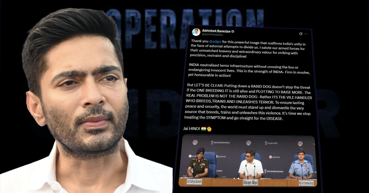 নাম না করে পাকিস্তানকে নিশানা করেন তৃণমূলের সর্বভারতীয় সাধারণ সম্পাদক। তাঁর কথায়, শুধু জঙ্গিদের ধ্বংস করলে হবে না, সন্ত্রাসবাদী যারা তৈরি করে তাদের খতম করার সময় এসে গিয়েছে। অভিষেক লেখেন, ”আসুন একটি বিষয়ে স্পষ্ট থাকি- একটি উন্মত্ত কুকুরকে হত্যা করলে হুমকি থামবে না যদি প্রজননকারী এখনও জীবিত থাকে এবং আরও বাড়ানোর ষড়যন্ত্র করে। আসল সমস্যা উন্মত্ত কুকুর নয়, বরং সেই জঘন্য হ্যান্ডলার যে প্রজনন করায়, প্রশিক্ষণ দেয় ও সন্ত্রাস করে। স্থায়ী শান্তি ও নিরাপত্তা নিশ্চিত করার জন্য, বিশ্বকে উঠে দাঁড়াতে হবে। এই সন্ত্রাসবাদের জন্ম, প্রশিক্ষণ ও ছড়ানোর উৎসটিকেই ধ্বংস করতে হবে। এখনই সময় এসেছে উপসর্গের চিকিৎসা বন্ধ করে সরাসরি রোগের বিরুদ্ধে লড়াই করার।