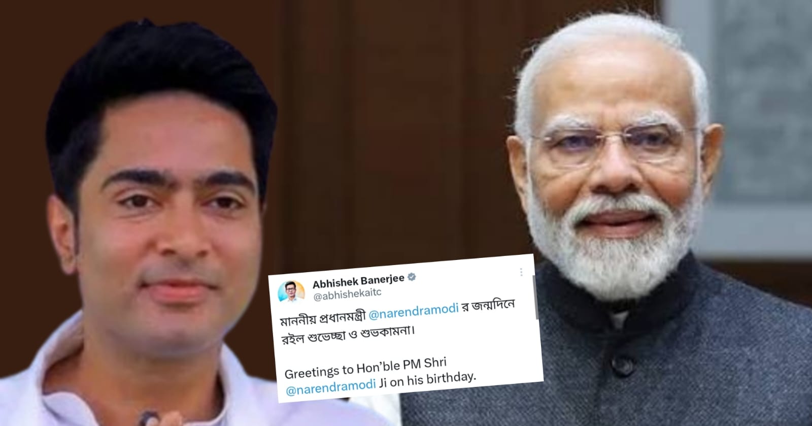 আজ, ১৭ই সেপ্টেম্বর প্রধানমন্ত্রী নরেন্দ্র মোদির ৭৫তম জন্মদিন। তাঁর জন্মদিন উপলক্ষে সকলেই শুভেচ্ছা জানাচ্ছেন। অগনিত শুভেচ্ছাবার্তা ইতিমধ্যেই পৌঁছেছে সোশাল মিডিয়ায়। আজকের এই বিশেষ দিনে ব্যতিক্রম নন অভিষেক বন্দ্যোপাধ্যায়। প্রসঙ্গত, রাজনৈতিক বিরোধিতা বা বিদ্বেষ ভুলে প্রতি বছরই অভিষেক বন্দ্যোপাধ্যায় প্রধানমন্ত্রীকে জন্মদিনে শুভেচ্ছা জানান। গত বছরেও তিনি টুইটবার্তায় শুভেচ্ছা জানান। বলা বাহুল্য, এই বিষয়ে বরাবরই রাজনৈতিক সৌজন্যে দেখিয়েছেন তৃণমূল কংগ্রেস সাংসদ। ভোট ময়দানে রাজনৈতিক চ্যালেঞ্জ থাকলেও , ব্যক্তিগতস্তরে তিনি সকলকেই যোগ্য সম্মান দেওয়ার ক্ষেত্রে খামতি রাখেন নি।