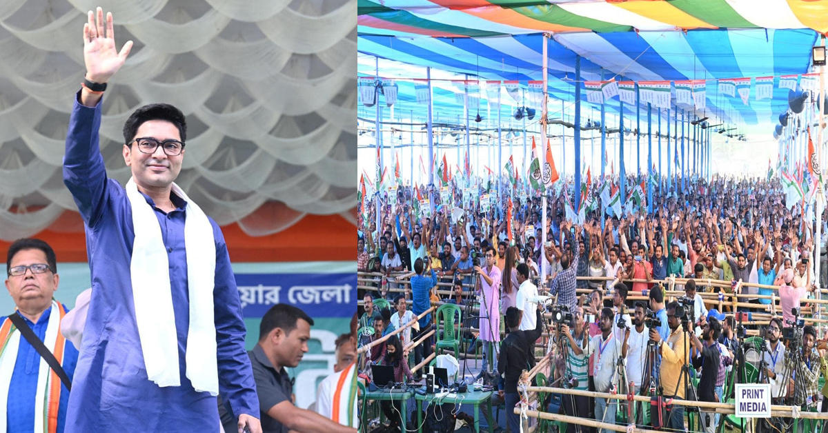 ঘড়ির কাঁটা ধরে ঠিক দুটো বাজতেই অভিষেক বন্দ্যোপাধ্যায়ের (Abhishek Banerjee) হেলিকপ্টার বাবুরহাটের অস্থায়ী হেলিপ্যাডে অবতরণ করল। চারদিকে তখন কালো মাথার ভিড়। যদিও সভার মাঠ দুপুর বারোটা বাজার আগেই কানায় কানায় ভর্তি হয়ে যায়। কিন্তু যখন অভিষেক (Abhishek Banerjee) মঞ্চে প্রবেশ করলেন তখনও মিছিল ঢুকছে মাঠে। কিন্তু সেখানে তিল ধারণের জায়গা না থাকায়, অনেককেই দূরে দাঁড়িয়ে মাইকে শুনতে হল তাঁর ভাষণ। জেলা তৃণমূল সভাপতি এই সভার প্রস্তুতি নিয়ে আগেই বলেছিলেন, লক্ষাধিক মানুষের ভিড় হবে এই সভা মাঠে। তাঁর কথাকেও ছাপিয়ে গিয়েছে আজকের মানুষের সমাগম। আজকের এই সভা ময়দানে চা-বলয়ের মানুষের উপস্থিতি ছিল চোখে পড়ার মতো। সকাল থেকেই জেলার প্রতিটি ব্লক থেকে কাতারে কাতারে মানুষ বিভিন্ন যানবাহন চেপে সভাস্থলের উদ্দেশ্যে রওনা দেয়। প্রচুর গাড়ির ভিড়ে একপ্রকার স্তব্ধ হয়ে যায় আলিপুরদুয়ার-ফালাকাটা নির্মীয়মাণ মহাসড়ক। পঞ্চায়েত ভোটের মুখে দলের সেকেন্ড ইন কমান্ড কী নির্দেশ দেন তা শুনতে দলীয় কর্মীদের মধ্যে উৎসাহ ছিল দেখবার মতো। সভা সেরে ফেরার পথে আত্মবিশ্বাসে ভরপুর তৃণমূল কর্মীদের দেখে বোঝা যাচ্ছিল যে, পঞ্চায়েত নির্বাচনের ভোকাল টনিক তারা আজকের সভা থেকে নিয়ে করে ফিরছে নিজের এলাকায়।