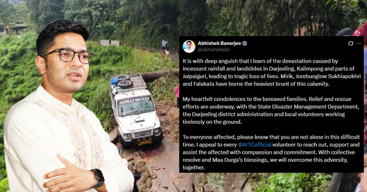 প্রাকৃতিক বিপর্যয় ক্ষতিগ্রস্ত উত্তরবঙ্গ। বিপর্যস্ত মানুষের প্রতি সহানুভূতি জানিয়েছেন নিজের এক্স হ্যান্ডেলে অভিষেক লেখেন, “দার্জিলিং, কালিম্পং ও জলপাইগুড়ির একাধিক এলাকায় লাগাতার বৃষ্টি ও ধসে ভয়াবহ পরিস্থিতি হয়েছে। মিরিক, জোরবংলো-সুখিয়াপোখরি এবং ফালাকাটা সবচেয়ে বেশি ক্ষতিগ্রস্ত। বহু মানুষের প্রাণহানির ঘটনায় আমি গভীরভাবে শোকাহত। মৃতদের পরিবারের প্রতি আন্তরিক সমবেদনা জানাই।”