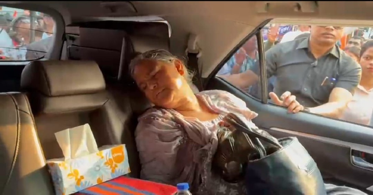 ভিড়ে অসুস্থ মহিলাকে নিজের গাড়িতে বসিয়ে নিজের বোতলের জল দিলেন অভিষেক