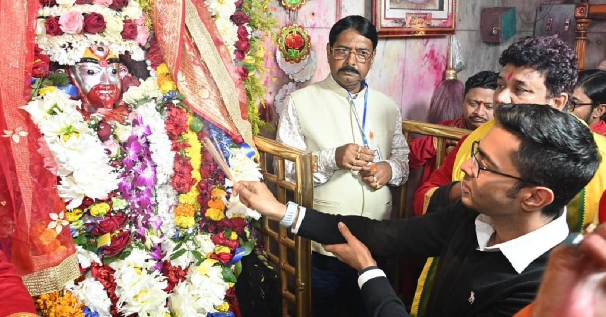 অভিষেক তাঁদের হাতজোড় করে প্রতি নমস্কার করেন। তারপর মন্দিরের সেবাইত ও পুরোহিতদের সঙ্গে ভেতরে ঢুকে পুজো দেন। মায়ের পায়ে হাত দিয়ে প্রণাম করেন এবং চামচে করে পরমান্ন তুলে দেন মায়ের মুখে। পুজো দিয়ে বেরিয়ে যাওয়া পর্যন্ত হাজার হাজার মানুষ ওঁকে দেখবার জন্য রাস্তার দু’পাশে দাঁড়িয়ে থাকেন। অভিষেক ওঁদের উদ্দেশে হাত নাড়েন, কখনও গাড়ি থামিয়েও উপস্থিত মানুষদের প্রতি নমস্কার জানান।