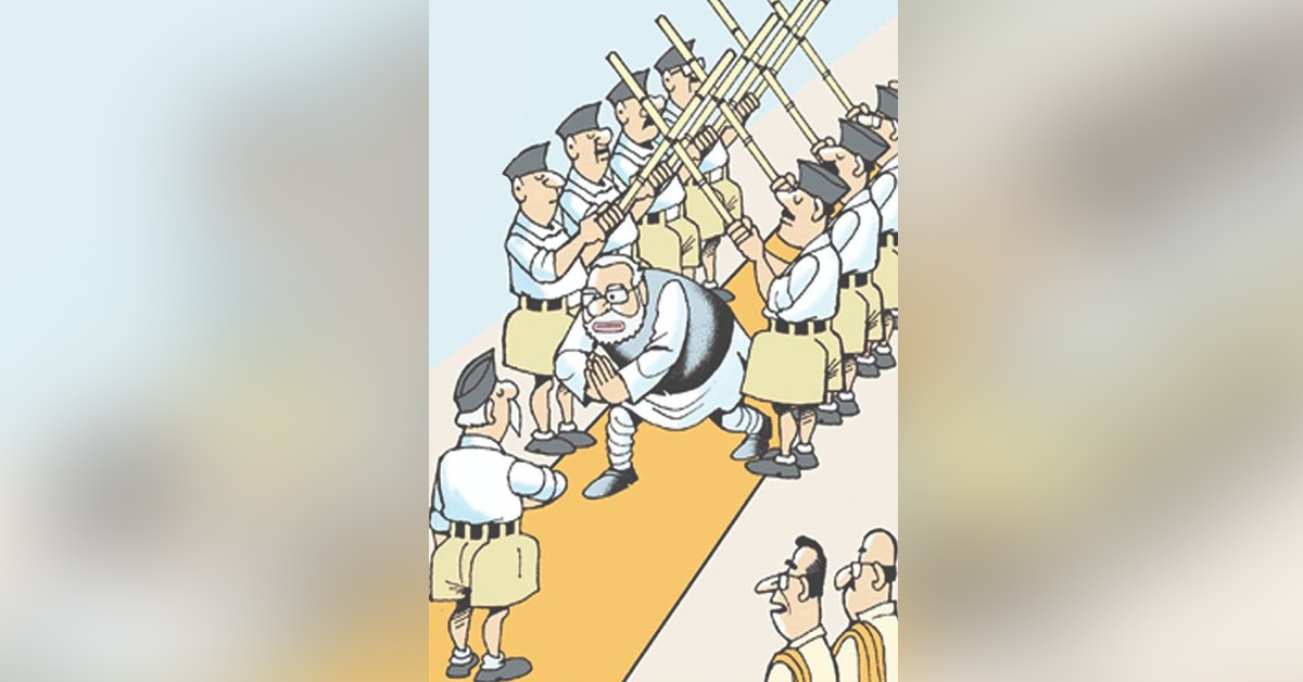 বিরোধী পক্ষের গরমাগরম টিভি-বিতর্কের মধ্যে এদের প্রকৃত শক্তি ধরা পড়ে না। এদের নির্বাচনী বিজয় বা সাম্প্রদায়িক শক্তি হিসেবে এদের বর্ণনার মধ্যে যে সমালোচনা তা অত্যন্ত অগভীর চিন্তার প্রকাশ। আরএসএসের যে চালু ভাবমূর্তি, তার সমালোচনা করে থেমে থাকলে চলবে না। একই সঙ্গে এদের বর্তমান সময়ের রূপ ও কৌশলকে বুঝতে হবে। তা না হলে গোটাটাই ছায়ার সঙ্গে যুদ্ধের মতো হয়ে দাঁড়াবে। কখনও কখনও আরএসএসের কার্যকলাপ মোদির অ্যাজেন্ডার পক্ষে কাজ করে। কিন্তু এটা বুঝতে হবে আরএসএস একটু নতুন হিন্দুত্বেষর রাজনীতি গড়ে তুলছে। যা, সাভারকার, গোলওয়ালকারের রাজনীতি থেকে বেশ কিছুটা আলাদা। নতুন হিন্দুত্বের রাজনীতর মধ্যে বহুত্ববাদের কথা আছে। আছে সবাইকে হিন্দুত্বের মধ্যে টেনে আনার কথা। দলিত, ওবিসি, মুসলিম— সকলকে। হিন্দু রাষ্ট্রের লক্ষ্যকে সামনে রেখে, ভারতবাসী মানেই হিন্দু— এরকম এক ভাবধারা গড়ে তুলে সকলকে ভয় দেখিয়ে নির্বাক করে দেওয়ার এই ভয়ঙ্কর কৌশলের মুখোশ খুলে দিতে না পারলে, এদেশে এক নয়া ফ্যাসিবাদী শাসন গড়ে উঠবে। ওদের নতুন ধারণা সমাজের তৃণমূলস্তর পর্যন্ত পৌঁছে গিয়েছে। এর বিরুদ্ধে দাঁড়াতে হলে তৃণমূলস্তর পর্যন্ত পৌঁছতে হবে। দেখা যাবে ‘নতুন আরএসএস’ পুরনো আরএসএসকে ধারণ করেই এগোচ্ছে। আরএসএস এখন আধুনিক রাজনীতির শব্দ ব্যবহার করছে। গণতন্ত্রের কথা বলছে। নারী স্বাধীনতার কথা বলছে। শুধু প্রাচীন বৃদ্ধদের গোষ্ঠীবদ্ধ পশ্চাৎ-পদতার মধ্যে আবদ্ধ নেই। তবুও তার শিকড় প্রোথিত আছে হিন্দুত্ববাদের মূল ধারায়।