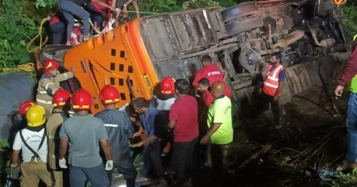 সোমবার মহারাষ্ট্রের থানের ডোমবিভিলি থেকে ৫৪ জন যাত্রীকে নিয়ে যাত্রা শুরু করে বাসটি৷ মুম্বই-পুণে এক্সপ্রেসওয়েতে পানভেলে বাসটির সামনে হঠাৎ একটি ট্রাক্টর চলে আসে৷ নিয়ন্ত্রণ হারিয়ে ফেলেন বাসচালক৷ ট্রাক্টরটির সঙ্গে মুখোমুখি সংঘর্ষ হয় বাসটির৷ সেটি পড়ে যায় ২০ ফুট গভীর খাদে৷ ঘটনাস্থলেই মৃত্যু হয় ৫ জনের৷ বহু পুণ্যার্থী আহত হয়েছেন৷ তাঁদের মধ্যে 8 জনের অবস্থা আশঙ্কাজনক নবি মুম্বইয়ের ডিসিপি বিবেক পানসারে বললেন, সোমবার রাত ১টা নাগাদ দুর্ঘটনাটি ঘটে। মুম্বই-পুণে এক্সপ্রেসওয়েতে। আষাঢ়ি একাদশী পালন করতে ৫৪ জন তীর্থযাত্রী মুম্বই থেকে পান্ধারপুরে যাচ্ছিলেন৷ বাসে যাত্রী ভর্তি ছিল৷ গভীর অন্ধকারে ভিড়ঠাসা বাসটির সঙ্গে ট্রাক্টরের সংঘর্ষ হয়৷ বাসটি খাদে পড়ে যায়৷ ৫ জনের মৃত্যু হয়েছে। ৪২ জন গুরুতর জখম পুণ্যার্থীকে চিকিৎসার জন্য এমজিএম হাসপাতালে ভর্তি করা হয়৷ সেখান থেকে কয়েকজনকে সরকারি হাসপাতালে ভর্তি করা হয়েছে৷ স্থানীয় লোকেরাই প্রথমে উদ্ধারের কাজে নেমে পড়েন। পরে যোগ দেন পুলিশকর্মীরাও। রাতের অন্ধকারে উদ্ধারের কাজে বেশ অসুবিধা হচ্ছিল।