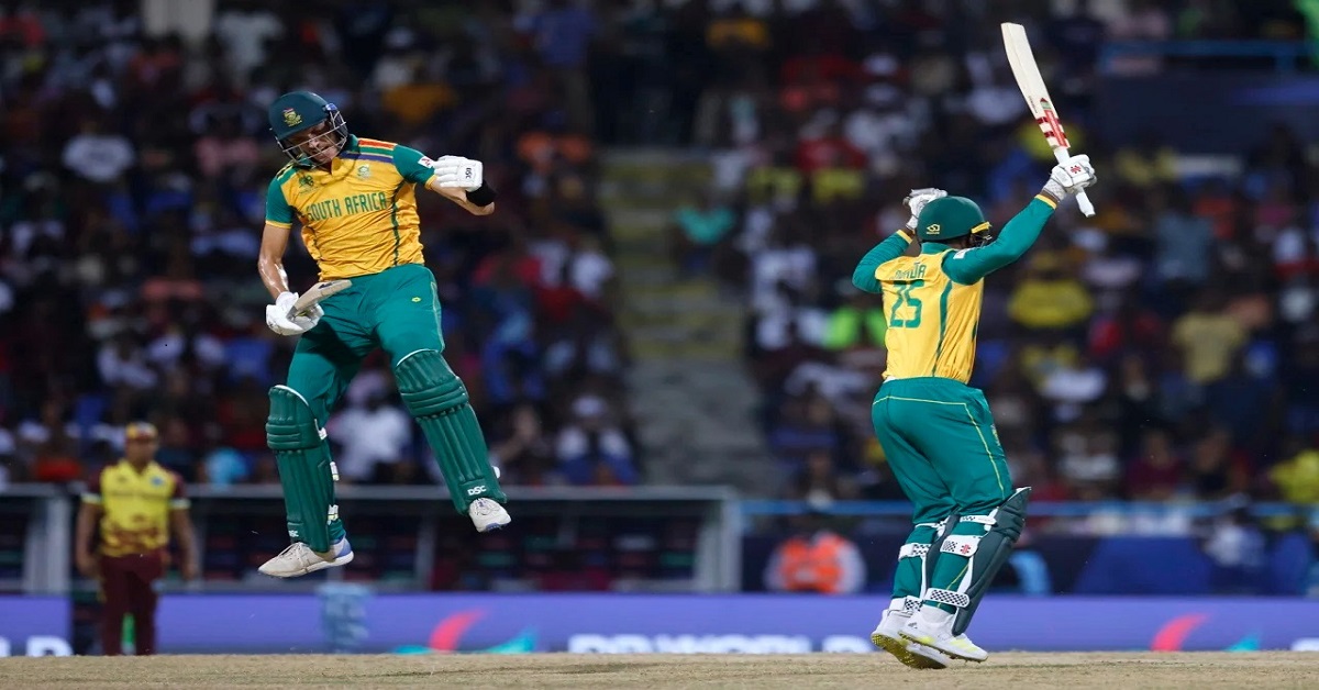 বৃষ্টির পর মার্করাম (১৮) আর স্টাবস রানকে এগিয়ে নিয়ে যাচ্ছিলেন। তবে দক্ষিণ আফ্রিকা অধিনায়ক তাঁর ব্যাডপ্যাচ অক্ষুণ্ণ রেখে আউট হয়ে যান। ক্লাসেন ১০ বলে ২২ রান করেছেন। স্টাবসের ব্যাট থেকে এসেছে ২৯ রান। কিন্তু এই সময় রস্টন চেস বিধ্বংসী চেহারা নিয়ে ৩ উইকেট তুলে নেন। এতে ১৫.২ ওভারে দক্ষিণ আফ্রিকার রান দাঁড়িয়েছিল ১১০/৭। শেষ ওভার যখন জয়ের জন্য দরকার ছিল ৫ রান, কাগিসো রাবাডা বাউন্ডারি মেরে দলকে সেমিফাইনালে তুলে নিয়ে যান। মার্কো জেনসেন নট আউট ছিলেন ২১ রানে।