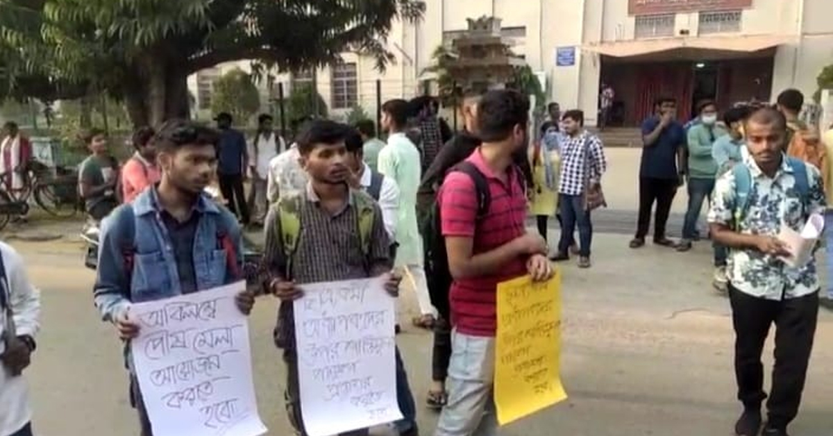 সংবাদদাতা, শান্তিনিকেতন : আবার পৌষমেলা করা, পূর্বিতার দখলমুক্তি, ছাত্র-অধ্যাপক ও কর্মীদের শাস্তি প্রত্যাহারের দাবিতে জমায়েত করার পাশাপাশি ভারপ্রাপ্ত উপাচার্যের কাছে স্মারকলিপি জমা দিলেন বিশ্বভারতীর (Visva Bharati) ছাত্রছাত্রী, অধ্যাপক সংগঠন ও কর্মীরা। বিশ্ববিদ্যালয়ের প্রধান কার্যালয়ের সামনে জমায়েত হয় মঙ্গলবার বেলা তিনটে নাগাদ। তারপর ভারপ্রাপ্ত উপাচার্য সঞ্জয়কুমার মল্লিকের সঙ্গে বৈঠকও করেন বেলা পাঁচটা নাগাদ। বৈঠক শেষে ভারপ্রাপ্ত উপাচার্যের হাতে মূলত তিন দফা দাবি সম্বলিত স্মারকলিপি তুলে দেন। ভারপ্রাপ্ত উপাচার্য নিয়ম মেনে ব্যবস্থা গ্রহণের আশ্বাস দিয়েছেন বলে জানান বিশ্বভারতী টিএমসিপি ছাত্রছাত্রী ইউনিটের সভানেত্রী মীনাক্ষী ভট্টাচার্য। মূল তিনটি দাবি হল— এক, চলতি বছর পৌষমেলার আয়োজন করতে হবে। দুই, ছাত্রছাত্রী, অধ্যাপক-অধ্যাপিকা, কর্মিবৃন্দের উপর সকল শাস্তিমূলক পদক্ষেপ প্রত্যাহার করতে হবে। তিন, পূর্বিতা বাংলোর বেআইনি দখলদারি ছাড়তে হবে। সেন্ট্রাল অফিসের সামনে জমায়েত করে মাইকে ছাত্র ও অধ্যাপক সংগঠনের সদস্যরা বক্তব্য পেশ করেন। তাঁরা পৌষমেলা-সহ বিশ্বভারতীতে (Visva Bharati) প্রাক্তন উপাচার্য বিদ্যুৎ চক্রবর্তী যে অচলাবস্থা কায়েম করে রেখেছিলেন তা কাটিয়ে সুস্থ স্বাভাবিক পরিবেশ ফিরিয়ে আনার পক্ষে বর্তমান উপাচার্যের কাছে আবেদন করেন। ৮ অক্টোবর বিদ্যুৎ চক্রবর্তীর অবসর নিয়েছেন। তারপরও পূর্বিতায় অবস্থান করছেন। এর পাশাপাশি, এখনও ছাত্রছাত্রী, কর্মী ও অধ্যাপকদের উপর নেওয়া প্রতিশোধমূলক সাসপেনশন ও শাস্তির খাঁড়া ঝুলছে। অধ্যাপক সংগঠন ভিবিউফা-র সদস্য অধ্যাপক সুদীপ্ত ভট্টাচার্য বলেন, পৌষমেলা শুধু আমাদের দাবি নয়। পৌষমেলার সঙ্গে সবার আবেগ জড়িয়ে আছে।