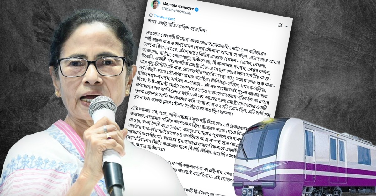 শুক্রবার মুখ্যমন্ত্রী এক্স হ্যান্ডেলে লেখেন, আজ আমাকে একটু স্মৃতিরোমন্থন করতে দিন। ভারতের রেলমন্ত্রী হিসেবে আমি ভাগ্যবান যে, মেট্রোপলিটন কলকাতায় মেট্রো রেলওয়ে করিডোরের পরিকল্পনা ও অনুমোদন আমার দ্বারাই হয়েছে। এই সম্পূর্ণ প্রকল্পের নীলনকশা তৈরি থেকে তহবিলের ব্যবস্থা, কাজ শুরু করেছি আমি। সেইসঙ্গে শহরের বিভিন্ন প্রান্তের সংযুক্তের পরিকল্পনাও করেছি ইন্ট্রা-সিটি মেট্রো গ্রিডের মাধ্যমে। তিনি লেখেন, পরবর্তীতে বাংলার মুখ্যমন্ত্রী হিসেবে আমি প্রকল্পগুলি বাস্তবায়নে অংশ নেওয়ার অতিরিক্ত সুযোগ পেয়েছি। বিনামূল্যে জমির বন্দোবস্ত, রাস্তার ব্যবস্থা, পুনর্বাসনের ব্যবস্থা করেছি। তারপর রেলের কাজে বাধা, অপসারণ এবং প্রকল্পগুলি বাস্তবায়নে সর্বাত্মক সহায়তা করেছি। রাজ্যের প্রধান সচিবরা এই প্রকল্পের বাস্তবায়নে ধারাবাহিকভাবে সমন্বয় সভা করে গিয়েছেন। রেলমন্ত্রী হিসেবে আমার পরিকল্পনা আমাদের পূর্ণ অংশগ্রহণে পূর্ণতা পেয়েছে। মেট্রো পরিকাঠামো সম্প্রসারণ ছিল একটি দীর্ঘ যাত্রার ফল। তাই আজ আমাকে স্মৃতিকাতর হতে দিন।