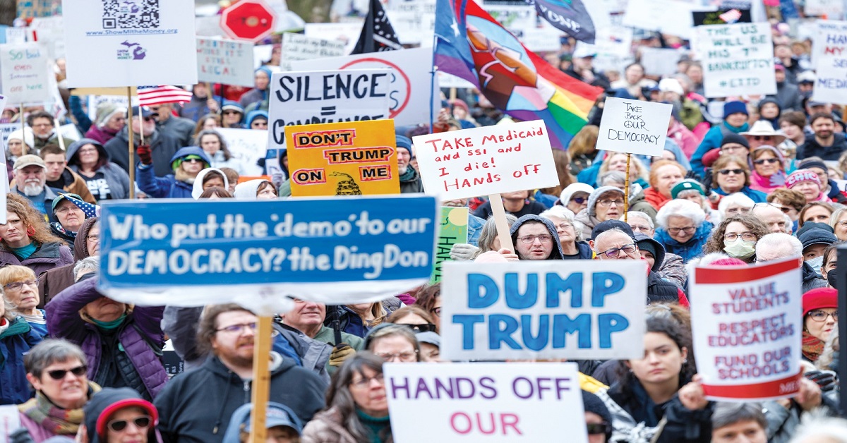 দেড়শোরও বেশি সংগঠনের নেতৃত্বে বিক্ষোভ-মিছিল চলছে আমেরিকার রাজপথে। ট্রাম্পের আচরণে বারবার ঔদ্ধত্য আর একনায়কতন্ত্রের প্রকাশ মিলছে বলে জানিয়েছেন তাঁরা। ‘হ্যান্ডস অফ’ প্রোটেস্ট করার মাধ্যমে গণতান্ত্রিক অধিকার রক্ষার দাবি জানিয়েছেন শ্রমিক ইউনিয়ন, রাজনৈতিক কর্মী থেকে সাধারণ মানুষ। প্রেসিডেন্টের শুল্কনীতির কথা জানার পর থেকেই তাঁরা ট্রাম্পকে ‘বদ্ধ উন্মাদ’ আখ্যা দিয়েছেন। পরিস্থিতি এতটাই গুরুতর যে আসরে নেমে ট্রাম্পের হয়ে ব্যাখ্যা দিতে হয়েছে হোয়াইট হাউসকে।