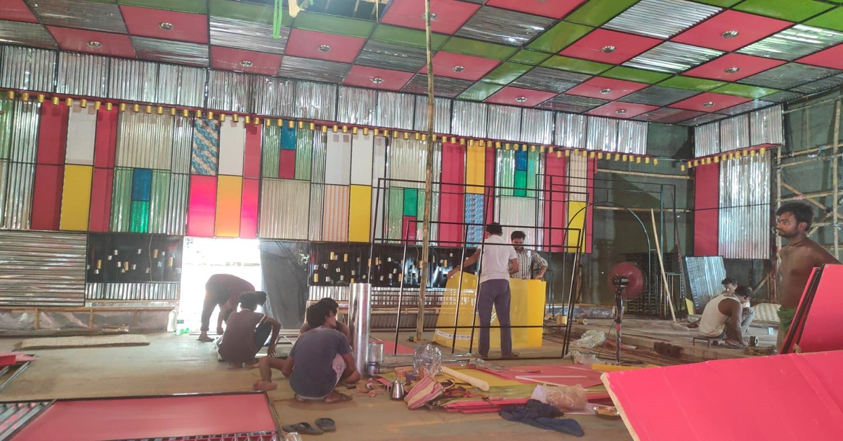 সংবাদদাতা, হুগলি: প্রতিবারেই দুর্গাপুজোয় ব্যতিক্রমী চমক দেয় চাঁপাতলা সর্বজনীন দুর্গোৎসব কমিটি। এইবারেও তার অন্যথা হচ্ছে না। এবারে ৮২ তম বর্ষে তাদের ভাবনা ‘অন্দরমহল’। পরিবেশবান্ধব উপকরণ ব্যবহার করে তৈরি হচ্ছে তাদের এই মণ্ডপ। টিন, টিনের বোতল, পিভিসি বোর্ড, কৌটো প্রভৃতি উপকরণের নিপুণ প্রয়োগে সজ্জিত হবে এই মণ্ডপ। তবে এই বছর দর্শনার্থীদের বিশেষভাবে আকৃষ্ট করতে, ঝাড়গ্রামের মাদলও একটি গুরুত্বপূর্ণ ভূমিকা পালন করবে বলে উদ্যোক্তারা জানিয়েছেন।