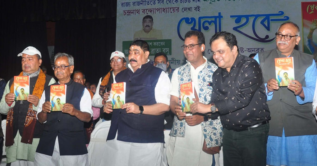 সংবাদদাতা, বোলপুর : বর্ণময় চরিত্র অনুব্রতর (Anubrata Mondal) স্লোগান ‘খেলা হবে’ (Khela Hobe) তাঁর জীবনীমূলক বইয়ের নামকরণ। বইয়ের প্রাক্কথন লিখেছেন শিক্ষামন্ত্রী ব্রাত্য বসু (Education Minister Bratya Basu)। বোলপুর (Bolpur) গীতাঞ্জলি প্রেক্ষাগৃহে আনুষ্ঠানিকভাবে সেই বইয়ের উদ্বোধন করেন শিক্ষা মন্ত্রী ব্রাত্য বসু। ছিলেন জেলা সভাপতি অনুব্রত মণ্ডল, বিধানসভার ডেপুটি স্পিকার আশিস বন্দ্যোপাধ্যায়, মন্ত্রী চন্দ্রনাথ সিংহ প্রমুখ। বই প্রসঙ্গে ব্রাত্য বসু বলেন, অনুব্রত মণ্ডল কথার মালা গাঁথতে জানেন। তিনি জানেন কোন কথা উঠে আসতে পারে একেবারে খবরের শিরোনামে। এই কারণেই অনুব্রতর গুড় বাতাসা, ঢাকের চড়াম চড়ামের মতো সাধারণ কথাও তাঁর ভঙ্গিতে ঈঙ্গিতপূর্ণ হয়ে উঠেছে।’ এই বইটিতে অনুব্রতর রাজনৈতিক উত্থানের কাহিনি রয়েছে। কীভাবে বামেদের অত্যাচারে নানুনের মানুষের পাশে দাঁড়িয়েছেন, বাড়িছাড়া কর্মীদের জায়গা দিয়েছেন নিজের বাড়িতে তা সবই উল্লেখ রয়েছে। বই প্রকাশের পর সংবাদমাধ্যমের মুখোমুখি হয়ে শিক্ষামন্ত্রী বলেন, ‘এই বইটি (Khela Hobe) আগামী দিনে বীরভূমের রাজনীতির ইতিহাস হিসাবে বেছে নেবেন পাঠকরা।’