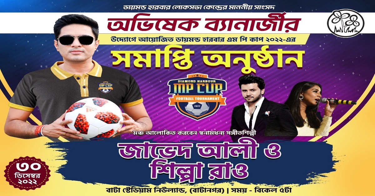 বৃহস্পতিবার পলাশ ঘোষের চার গোলের সৌজন্যে কুলেদারি ৬-০ গোলে হারিয়েছে রসপুঞ্জকে। সুপ্রতীপ বারুইয়ের হ্যাটট্রিকে চট্টা ৩-০ গোলে হারায় আশুতিকে। এদিকে, সাংসদ অভিষেক বন্দ্যোপাধ্যায়ের উদ্যোগে ৩০ ডিসেম্বর বাটানগর স্টেডিয়ামে এমপি কাপের ফাইনালের দিন জমকালো সমাপ্তি অনুষ্ঠান। মঞ্চে গান গাইবেন বিশিষ্ট সংগীতশিল্পী জাভেদ আলি ও শিল্পা রাও।