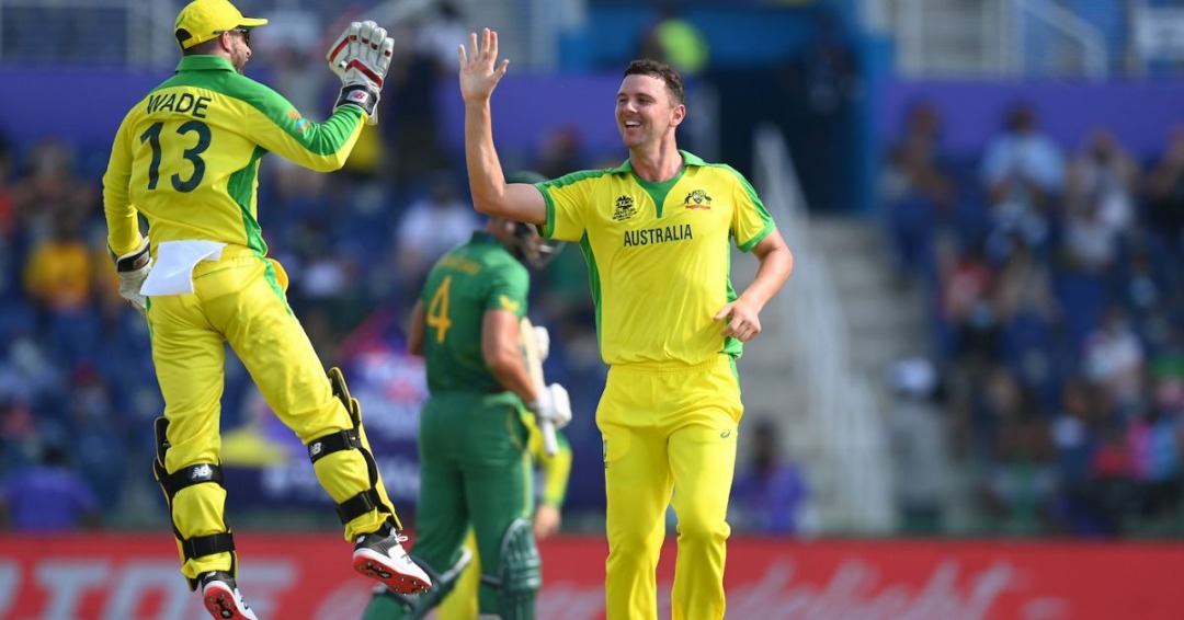 আবুধাবি, ২৩ অক্টোবর : জয় দিয়েই টি-২০ বিশ্বকাপ অভিযান শুরু করল অস্ট্রেলিয়া। শনিবার রুদ্ধশ্বাস উত্তেজক ম্যাচে দু’বল হাতে রেখে ৫ উইকেটে জয় ছিনিয়ে নেয় অস্ট্রেলীয়রা। এদিন প্রথমে ব্যাট করে ২০ ওভারে ৯ উইকেটে ১১৮ রান করেছিল দক্ষিণ আফ্রিকা। জবাবে ১৯.৪ ওভারে ৫ উইকেটে ১২১ রান তুলে জয় ছিনিয়ে নেয় ক্যাঙারু বাহিনী।