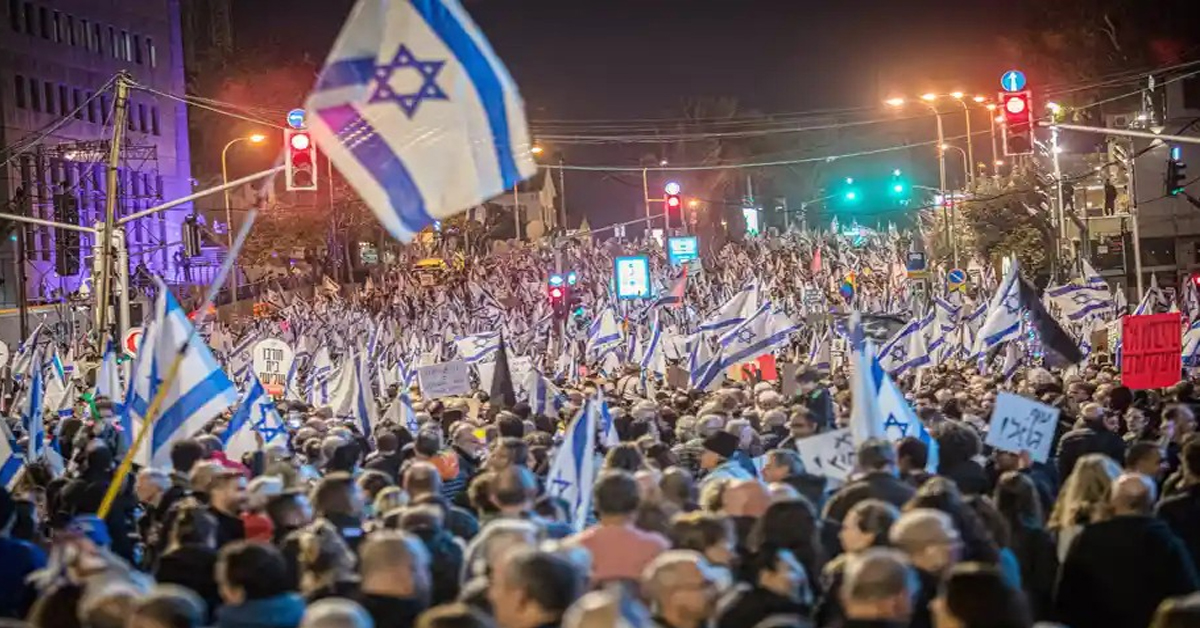 লক্ষ লক্ষ ইজরায়েলি জনগণ পথে নেমেছেন। ছাত্র-যুব, শ্রমিক, কর্মচারী-সহ সমাজের বিভিন্ন স্তরের মানুষের ক্ষোভের বিস্ফোরণ ঘটছে। নেতানিয়াহু চাইছেন দেশের বিচারব্যবস্থাকে করায়ত্ত করতে। একে কেন্দ্র করে মানুষের মধ্যে জমে থাকা ক্ষোভের আগুন ছড়িয়ে পড়ছে কলকারখানা থেকে বিশ্ববিদ্যালয়ে। রাজধানী তেল আভিভের বিমানবন্দর বন্ধ রাখতে বাধ্য হয়েছে সে-দেশের শাসকরা। বিক্ষোভ-রত মানুষ সমস্ত বাধানিষেধ উপেক্ষা করে রাজধানীর পথে পথে বিক্ষোভ প্রদর্শন করছেন। তাঁদের হাতে-ধরা পোস্টারে লেখা! ‘কোনও মানুষই আইনের ঊর্ধ্বে নন’। কোনও পোস্টারে লিখা— নেতানিয়াহু, ট্রাম্প এবং পুতিনের গ্রেফতারের দাবি। খবর পাওয়া যাচ্ছে নেতানিয়াহু-র বাড়ির সামনে বিক্ষোভ দেখাচ্ছেন মানুষ। নেতানিয়াহু চান সেদেশে বিচারপতি নিয়োগের কমিটির রদবদল করে বিচারব্যবস্থাকে করায়ত্ত করতে। আমাদের দেশের (BJP Government) আইনমন্ত্রীও কলেজিয়াম পদ্ধতিতে বিচারপতি নির্বাচনের বিরোধিতা করছেন। তিনিও চাইছেন কলেজিয়ামে সরকারের প্রতিনিধি থাকুক। তবে এখনও তিনি দেশের সুপ্রিম কোর্টের প্রধান বিচারপতির মাথা নোয়াতে পারেননি। তাই ক্রোধের বশবর্তী হয়ে যথেচ্ছ অশালীন কথা বলছেন বিচারকদের।
