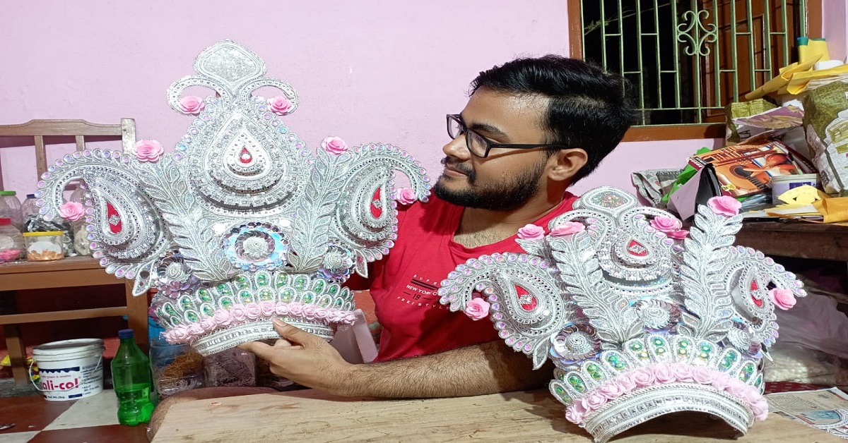 দুলাল সিংহ, বালুরঘাট: ভিনদেশিদের দুর্গাপুজোয় চমক বাংলার ছেলের। বালুরঘাটের প্রতিমার সাজশিল্পী দেবজ্যোতি মোহরার তৈরি দুর্গা প্রতিমার সাজ পাড়ি দিল সুদূর ক্যালিফোর্নিয়ায়। চমক থাকবে দক্ষিণ দিনাজপুর জেলার প্রতিমার সাজেও, দাবি দেবজ্যোতির। কলেজে পড়ার সময়ে বাড়িতে দুর্গাপুজো করার জন্য নিজে প্রতিমা গড়ার মধ্য দিয়ে হয়েছিল শুরু। সেই সময় দুর্গা প্রতিমার সাজ নিজে হাতে তৈরি করে সাজ তৈরির কাজের শুভারম্ভ হয়েছিল।