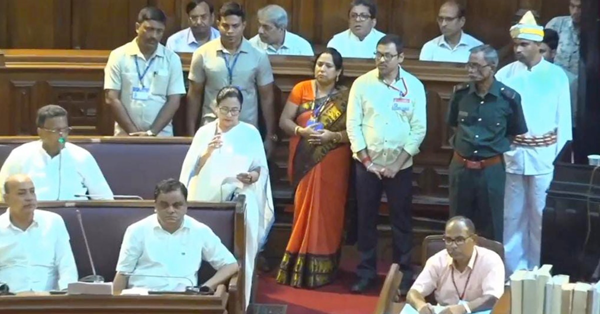 এদিন অধিবেশেনের শেষে মুখ্যমন্ত্রী-সহ বিধায়করা “বাংলার মাটি, বাংলার জল” গানটি গান।