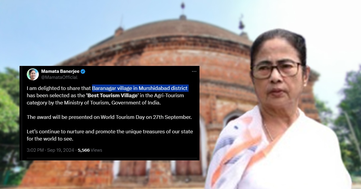 ২০২৩ এর পর ফের একবার বঙ্গের এক গ্রাম দেশের সেরা পর্যটন গ্রামের শিরোপা ছিনিয়ে নিল। নরেন্দ্র মোদি সরকারের পর্যটন মন্ত্রক ঘোষণা করল দেশের সেরা পর্যটন গ্রাম হল মুর্শিদাবাদ জেলার বরানগর। এরপরেই সোশাল মিডিয়ায় পোস্ট করে মুখ্যমন্ত্রী মমতা বন্দ্যোপাধ্যায় জানান, ”দেশের সেরা পর্যটন গ্রামের স্বীকৃতি পেল মুর্শিদাবাদের (Murshidabad) বরানগর। মুর্শিদাবাদের এই গ্রামকে দেশের সেরা পর্যটন গ্রামের স্বীকৃতি দিয়েছে পর্যটন মন্ত্রক (Tourism Department of India)। আমি এটা জানাতে পেরে অত্যন্ত আনন্দিত যে মুর্শিদাবাদ জেলার বরানগর গ্রামকে ভারত সরকারের পর্যটন মন্ত্রক কৃষি-পর্যটন বিভাগে ‘সেরা পর্যটন গ্রাম’ হিসেবে নির্বাচিত করেছে। আগামী ২৭ সেপ্টেম্বর বিশ্ব পর্যটন দিবসে এই পুরস্কার প্রদান করা হবে। আসুন আমাদের রাজ্যের অন্যান্য সকল সম্পদ আমরা প্রচারের আলোয় আনার দায়িত্ব গ্রহণ করি।”