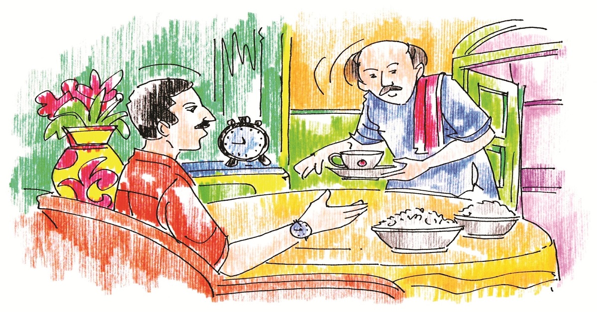 হারাধন চা নিয়ে এল মুড়ির বাটিটা নামিয়ে রাখার পরই। হাত বাড়িয়ে চা-টা নিয়ে বললেন, ‘‘দে, ঘড়িটা খুলে দে।’’ হারাধন ঘড়ি খুলছে, সেদিকে তাকিয়ে শিবশংকর টের পেলেন তিনি মৃদুমন্দ ঘামছেন। মানে তার টেনশন হচ্ছে। এই কারণেই তিনি ঘড়িটা এতদিন পরাননি ওকে।