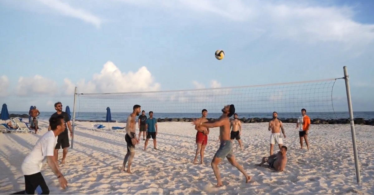 বার্বাডোজে যে হোটেলে ভারতীয় দল রয়েছে, তার ঠিক সামনেই সমুদ্র সৈকত। সোমবার সেখানেই বিচ ভলিবল খেলে অনেকটা সময় কাটালেন ক্রিকেটাররা। বিরাট কোহলি, হার্দিক পান্ডিয়া, যশস্বী জয়সওয়াল, অর্শদীপ সিং, রিঙ্কু সিং, শিবম দুবে, যুজবেন্দ্র চাহালরা ছুটির মেজাজে উপভোগ করলেন পুরো সময়টা। নিজেদের মধ্যে রসিকতাও করতে দেখা গেল তাঁদের। বিশেষ করে, বিরাট তো রীতিমতো ফুরফুরে মেজাজে ছিলেন। সেই খেলার ভিডিও এক্স হ্যান্ডেলে পোস্ট করেছে বিসিসিআই। যেখানে রিজার্ভ দলে থাকা খলিল আহমেদকে বলতে শোনা গিয়েছে, ‘‘আমাদের দলে বেশ কয়েকজন খুব ভাল মানের ভলিবল প্লেয়ার আছে। রিঙ্কু আর যশস্বী তো দুর্দান্ত।’’ পরে ভারতীয় ক্রিকেটাররা নেটেও গা ঘামিয়েছেন। বিরাট প্রায় ৪০ মিনিট নেটে ব্যাট করেন। টানা বল করতে দেখা যায় কুলদীপ যাদব ও অক্ষর প্যাটেলকে।
