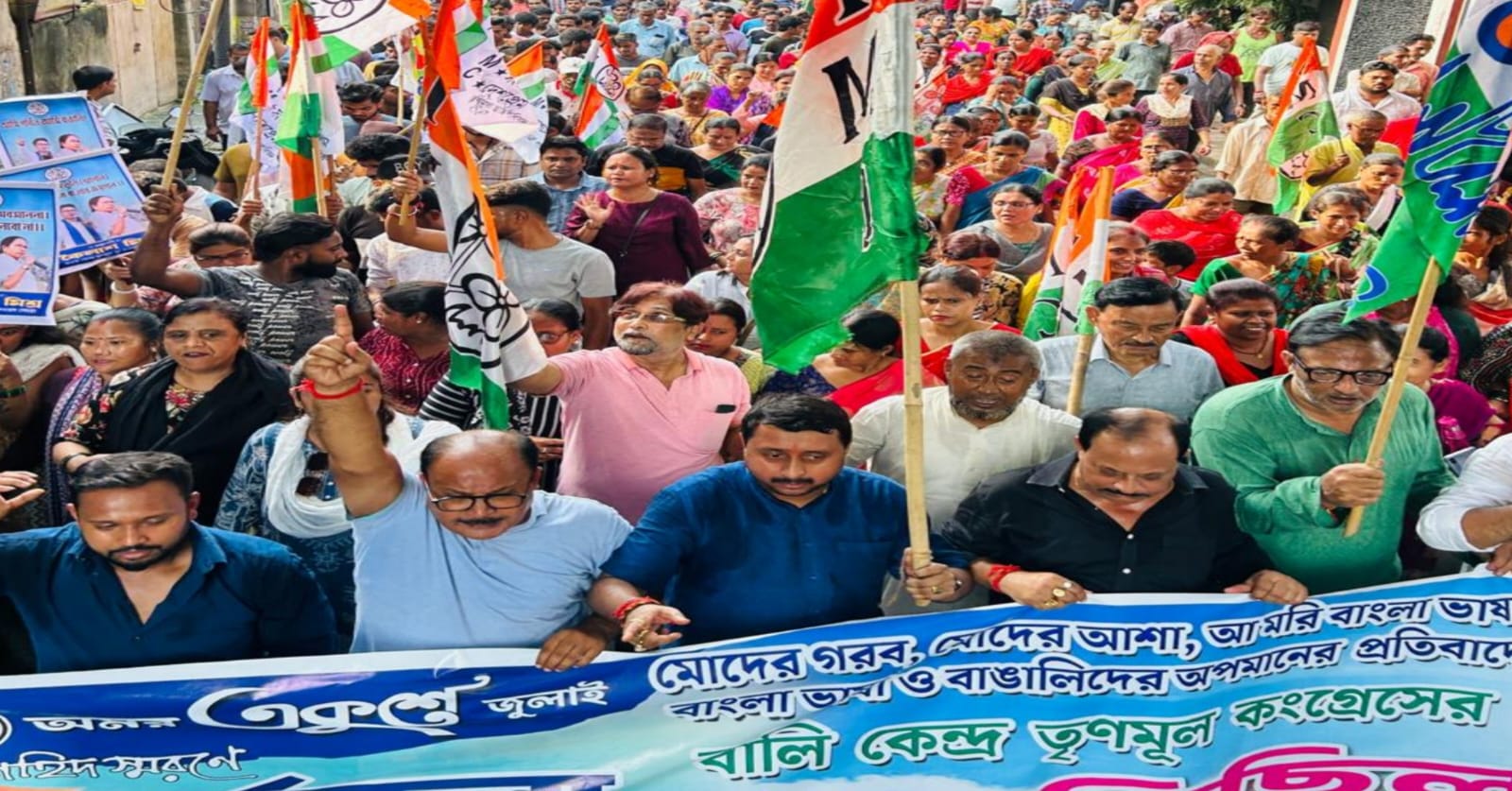 সংবাদদাতা, হাওড়া: বাংলায় কথা বললেই বিজেপি-শাসিত রাজ্যে জেলে ভরে দেওয়া হচ্ছে অকারনে। বিজেপি-শাসিত রাজ্যগুলিতে বাঙালিদের উপরে অকথ্য অত্যাচার চালাচ্ছে সেখানকার জেলা প্রশাসন। মুখ্যমন্ত্রী মমতা বন্দ্যোপাধ্যায়ের আদর্শে, তাঁর দেখানো পথে প্রতিবাদে শামিল হলেন বালির মানুষ। শনিবার বিকেলে যুবনেতা কৈলাস মিশ্রের নেতৃত্বে বালির তৃণমূল কর্মীরা মহামিছিল করলেন।