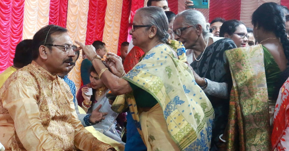 প্রতিবেদন : ভাইফোঁটা বাঙালিদের বড্ড বেশি স্পেশ্যাল। ভাই-বোনের আত্মিক বন্ধনের এই উৎসব বাংলার সংস্কৃতির অন্যতম বড় পরিচায়কও বটে। বাড়িতে দাদাদের ফোঁটা দিয়ে বোনেদের আবদার প্রতি ঘরের চেনা ছবি। কিন্তু এই উৎসবের আবহে যাঁদের কাছে প্রিয়জনেরা নেই অথবা অনেক দূরে সরে গেছেন কাছের মানুষেরা, বৃদ্ধাশ্রমে থাকা সেই বয়স্ক চোখগুলো তাকিয়ে থাকেন নবনীড় আর তৃণমূলের দিকে। টালিগঞ্জ বিধানসভা এলাকার বাঁশদ্রোণীর ‘নবনীড় বৃদ্ধাশ্রম’-এ প্রতি বছরের মতো এবারও তৃণমূলের উদ্যোগে সাড়ম্বরে পালিত হল ভাইফোঁটা। ১০০ জন বৃদ্ধা শুধু যে রাজ্যের মন্ত্রী অরূপ বিশ্বাসকে (Bhai dooj- Aroop Biswas) ফোঁটা দিলেন তাই নয়, ভালবাসায় ভরিয়ে দিলেন উপস্থিত টলি-তারকাদেরও।
