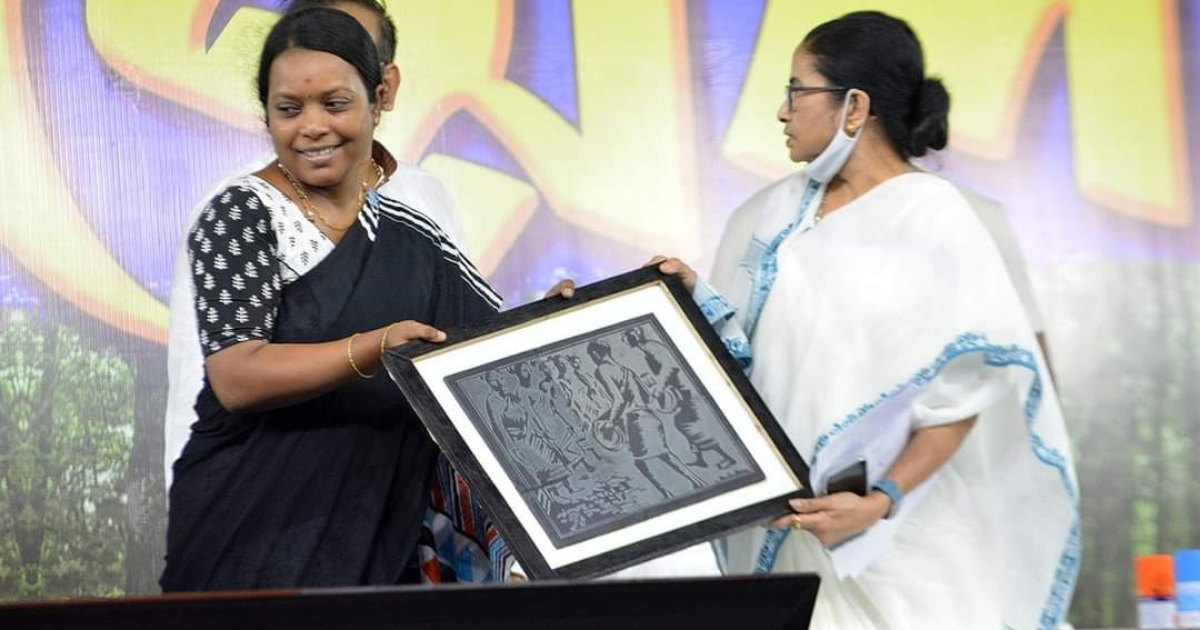 মিতা নন্দী, ঝাড়গ্রাম: স্লেট কেটে তৈরি দুর্গামূর্তি আর মাদল ধামসা নিয়ে নৃত্যরত আদিবাসী নারী-পুরুষের ভাস্কর্য পেয়ে খুশি বাংলার মুখ্যমন্ত্রী! সেটি এগুলো সঙ্গে করে কলকাতায় নিয়ে যান। তাঁর তৈরি শিল্পকর্ম মুখ্যমন্ত্রীর পছন্দ হওয়ায় খুশি ভাস্কর সুবীর বিশ্বাস (Bhaskar Subir Biswas)। সুবীরের শিল্পকর্ম বৃহস্পতিবার মুখ্যমন্ত্রী মমতা বন্দ্যোপাধ্যায়ের (CM Mamata Banerjee) হাতে তুলে দেন বন ও ক্রেতাসুরক্ষা প্রতিমন্ত্রী বীরবাহা হাঁসদা। ঝাড়গ্রাম স্টেডিয়ামে তৃণমূল কংগ্রেসের মহা কর্মিসম্মেলনে। বীরবাহা জানান, মুখ্যমন্ত্রী দুর্গাভাস্কর্য পেয়ে খুব খুশি। সঙ্গে করে নিয়েও গিয়েছেন। সেই সঙ্গে খোঁজ নিয়েছেন শিল্পীর। ভাস্কর সুবীর (Bhaskar Subir Biswas) বলেন, ‘অনেকেই আমার শিল্পকর্ম নিয়ে গিয়েছেন। তবে মুখ্যমন্ত্রী নেওয়ায় গর্ব অনুভব করছি।’ তিনি জানান, এই ধরনের কাজ ৩০-৩৫ বছর ধরে করছেন। প্রায় ১০ হাজার এই ধরনের কাজ করেছেন। দুর্গামূর্তিটি তৈরি করতে প্রায় এক মাস লেগেছে। আর নৃত্যরত নারী-পুরুষের শিল্পকর্মটি করতে লেগেছে সাতদিন। ঝাড়গ্রাম শহরের ঘোড়াধরা এলাকায় তাঁর ছোট্ট একটি স্টুডিও রয়েছে। স্লেট ছাড়াও কাঠ বা ধাতু কেটে ভাস্কর্য বানানোর পাশাপাশি ছবি আঁকা ও কাব্যচর্চা তাঁর নেশা। মুখ্যমন্ত্রীর কাছে সুবীরের আবেদন, ঝাড়গ্রাম বিশ্ববিদ্যালয়ে ঝাড়গ্রামের বৈচিত্র্যপূর্ণ লোকসংস্কৃতি, ভাস্কর্য ও ছবি আঁকার ওপর স্নাতক পর্যায়ের কোনও কোর্স রাখলে ভাল হয়। এতে বহু ছেলেমেয়ে প্রতিষ্ঠিত হওয়ার নতুন দিশা পাবে।