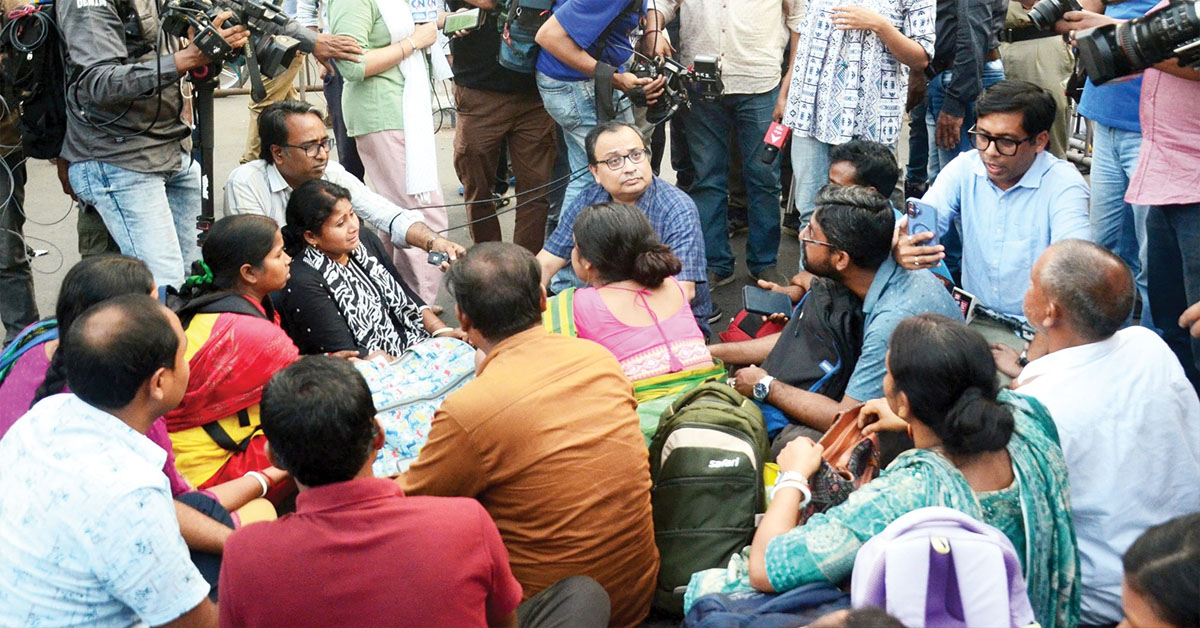 প্রতিবেদন : নিয়োগের সুপারিশপত্র দিয়েছেন মানবিক মুখ্যমন্ত্রী মমতা বন্দ্যোপাধ্যায়। সমস্ত কিছু তৈরি। কিন্তু স্রেফ নোংরা খেলায় নেমে যোগ্য চাকরিপ্রার্থীদের নিয়োগ আটকে দিয়েছে মামলাবাজ বিকাশ ভট্টাচার্য। যার ফলে ১,২৮০ জন এসএলএসটির যোগ্য চাকরিপ্রার্থী এখনও তাঁদের প্রাপ্য চাকরি থেকে বঞ্চিত। এর প্রতিবাদে শুক্রবার ‘হাইকোর্ট চলো’ অভিযান করলেন এসএলএসটির (SLST) বঞ্চিতরা। সঙ্গে ছিলেন রাজ্য সাধারণ সম্পাদক কুণাল ঘোষ। হাইকোর্ট যাওয়ার পথে পুলিশ পথ আটকালে রানি রাসমণিতে চাকরিপ্রার্থীরা অবস্থানে বসে পড়েন। সঙ্গে বসেন কুণালও। চাকরিপ্রার্থীরা স্পষ্ট জানিয়েছেন, অন্যায়ভাবে চাকরি আটকানো হচ্ছে। বিচারপতি বসুর এজলাসে ৬১টি শুনানির পরেও কোনও সুরাহা হয়নি। তাই তাঁরা প্রধান বিচারপতির হস্তক্ষেপ চেয়েছেন। তাঁর সঙ্গে দেখা করতে চান। পুলিশ জানিয়েছে, আগামী সপ্তাহে তাঁদের দাবি মেনে যথাযথ পদক্ষেপ নিচ্ছে পুলিশ। এই টানাপোড়েনে একজন মারাও গিয়েছেন। চাকরির সুপারিশপত্র পাওয়া ১,২৮০ জনের বিরুদ্ধে কোনও সিবিআই মামলা নেই। সিপিএম মিথ্যাচার করছে। এঁদেরই ধরনামঞ্চে এর আগে সিপিএম বলেছিল, এঁরা সকলে যোগ্য। এঁদের চাকরি পাওয়া উচিত। অথচ এখন নোংরা খেলায় নেমেছে। কুণাল বলেন, এঁদের দাবি ন্যায্য। মানবিক। সিপিএমের নোংরা খেলায় এদের চাকরি আটকে। বহু আগে থেকেই এঁরা আমার সঙ্গে যোগাযোগ রাখেন। ওঁরা এখন পথে নেমেছেন। ফলে আমি আমার মানবিক দায়িত্ববোধ এড়াতে না পেরে সঙ্গে রয়েছি।