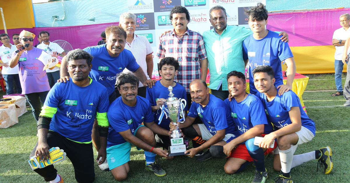 মার্লিন গ্রুপের সহযোগিতায় ক্যালকাটা স্পোর্টস জার্নালিস্ট ক্লাবের উদ্যোগে দু’দিনব্যাপী মিডিয়া ফুটবলের ইলেক্ট্রনিক্স মিডিয়া বিভাগে চ্যাম্পিয়ন হল বিশ্ববাংলা সংবাদ (Biswa Bangla Sangbad)। শুক্রবার ফাইনালে তারা ৩-০ গোলে হারিয়েছে নিউজ টাইমকে। ম্যাচের সেরা হন বিশ্ববাংলা সংবাদের মৈনাক পাত্র। অন্যদিকে, প্রিন্ট মিডিয়া বিভাগের ফাইনালে দিন দর্পণকে ২-১ গোলে হারিয়ে চ্যাম্পিয়ন হয়েছে দৈনিক সংবাদ। পুরস্কার বিতরণী অনুষ্ঠানে উপস্থিত ছিলেন প্রাক্তন তিন ফুটবল তারকা ভাস্কর গঙ্গোপাধ্যায়, শিশির ঘোষ এবং কৃষ্ণেন্দু রায়-সহ আরও অনেক বিশিষ্ট ব্যক্তি। ছবিতে বিশ্ববাংলা (Biswa Bangla Sangbad) দলের ফুটবলাররা।