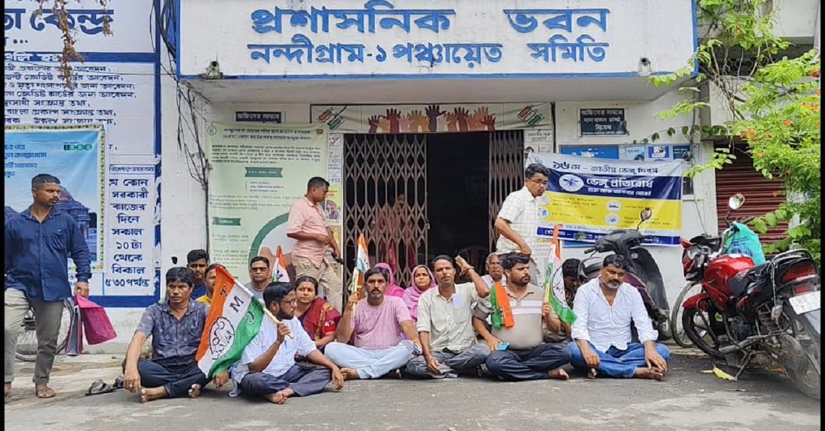 সংবাদদাতা, নন্দীগ্রাম : নন্দীগ্রাম ১ ব্লকে বিজেপি পরিচালিত নন্দীগ্রাম গ্রাম পঞ্চায়েত প্রধানের বিরুদ্ধে একাধিক কাজের জন্য জোরপূর্বক টাকা নিয়েছেন, এই অভিযোগ তুলে তাঁর বিরুদ্ধে ব্যবস্থা গ্রহণের দাবি জানিয়ে বিডিও অফিসের সামনে মঙ্গলবার অবস্থান বিক্ষোভে শামিল হন তৃণমূলের নেতা ও জনপ্রতিনিধিরা। এর ভিত্তিতে প্রধান লক্ষ্মীকান্ত জানা-সহ দুই কর্মীকে শোকজও করলেন বিডিও। জানা গিয়েছে, গত পঞ্চায়েত নির্বাচনে ওই পঞ্চায়েতে ক্ষমতা দখল করে বিজেপি। প্রধান হন লক্ষ্মীকান্ত জানা। তাঁর বিরুদ্ধেই একাধিক দুর্নীতি ও অনিয়মের অভিযোগ উঠেছে। ইতিমধ্যে তৃণমূলের পঞ্চায়েত সদস্যরা বিডিওর কাছে লিখিত অভিযোগও জমা দিয়েছেন। তাঁদের দাবি, নন্দীগ্রাম ৭ নম্বর সংসদে প্রবীর মাইতির বাড়ির পিছন থেকে জয়দেব পালের জায়গা পর্যন্ত একটি কংক্রিটের ড্রেন নির্মাণের কথা ছিল। সেটি নির্মাণ না হওয়া সত্ত্বেও সব টাকা পেমেন্ট করা হয়ে গিয়েছে।