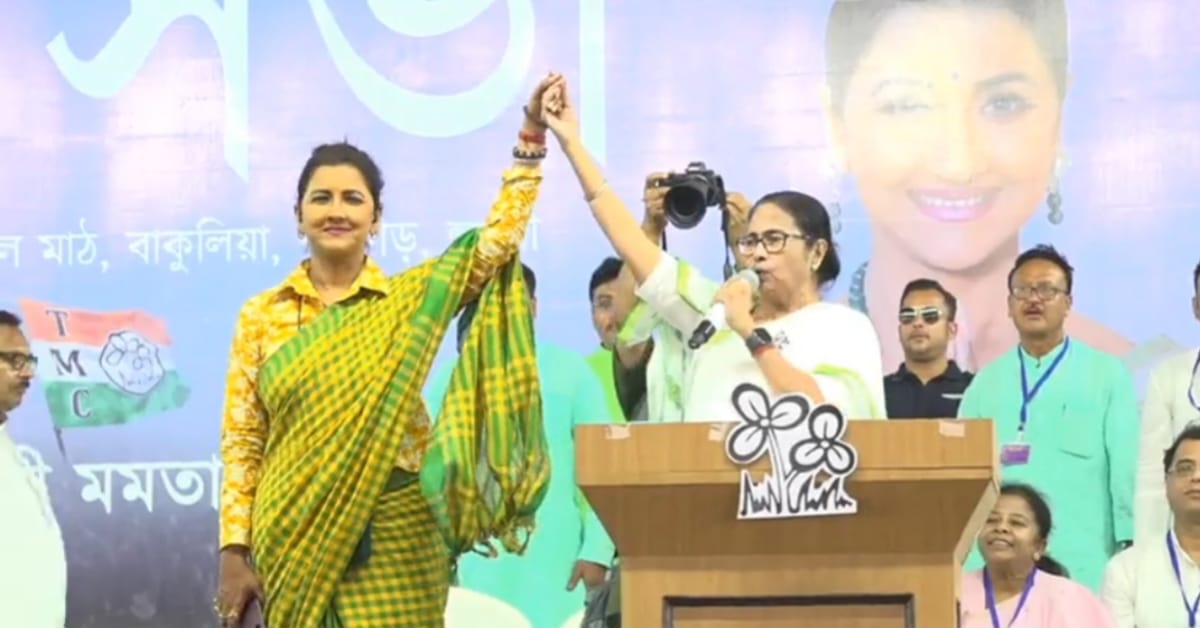 রবীন্দ্রনাথ ঠাকুরের জন্মদিনে সভা করছেন মমতা বন্দ্যোপাধ্যায়। তাই এদিন তাঁর কথায় ঘুরে ফিরে এল রবিঠাকুরের গান ও কবিতা। ‘তুমি কি কেবলই ছবি’,’জীর্ণ পুরাতন, যাক ভেসে যাক, … ভাঙো বাঁধ ভেঙে দাও’ বলার পরেই ‘‘বিজেপিকে ভাঙো আর ভাঙনের নয়, জীবনের জয়গান গাও’’ গেয়ে ওঠেন তিনি। হুগলির তৃণমূল প্রার্থী রচনা বন্দ্যোপাধ্যায়ের হাত ধরে মুখ্যমন্ত্রী স্পষ্ট ভাষায় বললেন, ”রচনার চিহ্ন ইভিএমে তিন নম্বরে থাকবে। তিন নম্বরে ভোট দিন, বিজেপিকে বিদায় দিন।”