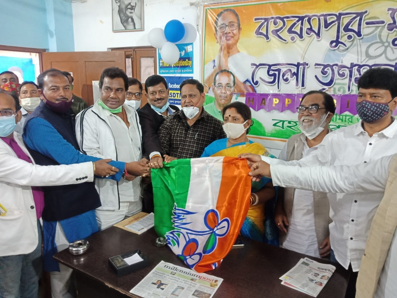 সংবাদদাতা, বহরমপুর : পুরভোটের আগেই বড় ধাক্কা খেল মুর্শিদাবাদ (Murshidabad) জেলা বিজেপি। তৃণমূল কংগ্রেসে (Trinamool Congress) যোগ দিলেন জেলা বিজেপি (BJP) সাধারণ সম্পাদক তপন চন্দ্র (Tapan Chandra)। সোমবার, বহরমপুরের তৃণমূল কংগ্রেস কার্যালয়ে দলত্যাগী বিজেপি নেতার হাতে দলীয় পতাকা তুলে দিলেন বহরমপুর সাংগঠনিক জেলা তৃণমূল সভাপতি শাওনি সিংহ রায়। এছাড়া ডোমকল মহকুমা মণ্ডল সভাপতি অভীক দাস, কানাই পাল, রতন হালদার–সহ প্রায় ৫০০ বিজেপি কর্মী–সমর্থক তৃণমূল কংগ্রেসে যোগ দিলেন। তপন চন্দ্রের অভিযোগ, বিজেপিতে কোনো সম্মান পাচ্ছিলেন না। বহরমপুরের বিজেপি (BJP) বিধায়ক কার্যত ব্যর্থ। ফলে শহরের মানুষকে আর মুখ দেখানো যাচ্ছিল না। সে কারণেই দলত্যাগ। পুরভোটের আগে বহরমপুরে বিজেপি জোর ধাক্কা খেল বলে জানালেন শাওনি। বলেন, দিদির নেতৃত্বে উন্নয়ন দেখে বিজেপি নেতা–কর্মীরা গুটিয়ে গেছেন। যাঁরা লুকিয়ে ছিলেন বা প্রথম সারিতে ছিলেন, তাঁরা স্বেচ্ছায় দল ছেড়ে তৃণমূল কংগ্রেসে যোগ দিচ্ছেন। এদিনের যোগদান সভায় বিধায়ক হুমায়ুন কবির, বিধায়ক জাফিকুল ইসলাম, অশোক দাস, নাড়ুগোপাল মুখোপাধ্যায় প্রমুখ ছিলেন।