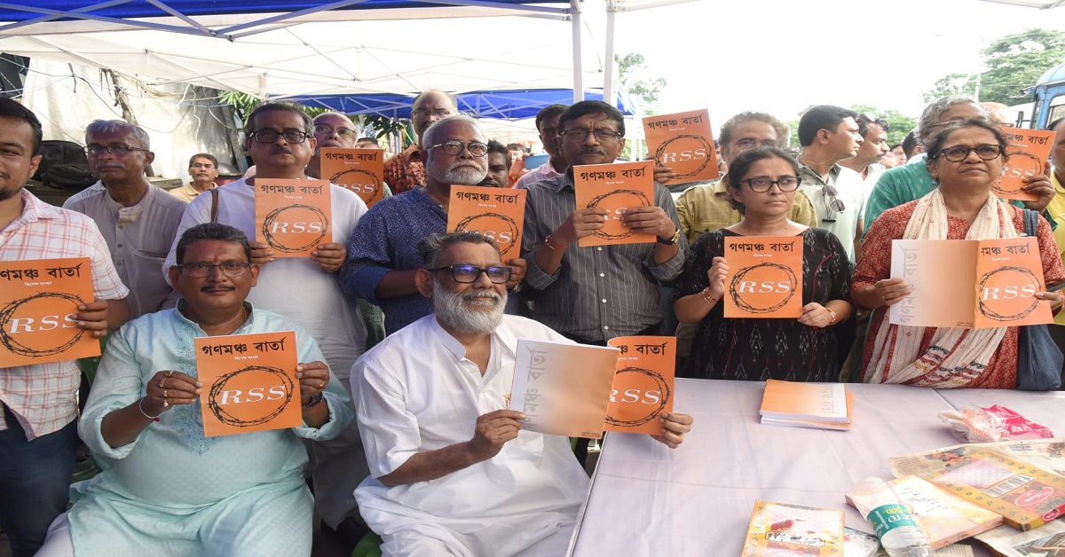 শনিবার সৌভ্রাতৃত্বের বার্তার প্রচার করে দেশ বাঁচাও গণমঞ্চ প্রকাশ করল ‘গণমঞ্চ বার্তা’র বিশেষ সংখ্যা। এই সংখ্যার প্রধান বিষয় ছিল— ‘আরএসএস কীভাবে ভারতবর্ষের সংবিধান এবং সমাজকে ধ্বংস করছে।’ সেখানেই তুলে ধরা হয়, সাম্প্রতিক সময়ে গোটা দেশ জুড়ে ধর্মীয় অস্থিরতা তৈরিতে বিজেপির পরিকল্পনার পিছনে রয়েছে আরএসএসেরই ইন্ধন। স্বাধীনতার পূর্ববর্তী সময় থেকে যেভাবে আরএসএস ব্রিটিশকে ইন্ধন জুগিয়ে দেশভাগে এবং সর্বোপরি ধর্মের ভিত্তিতে দেশভাগে প্রভাবিত করেছিল, সেই একই ছবি বর্তমান সময়েও দেখা যাচ্ছে। এক্ষেত্রে নেতৃত্বে আরএসএস নয়, রয়েছে বিজেপি।