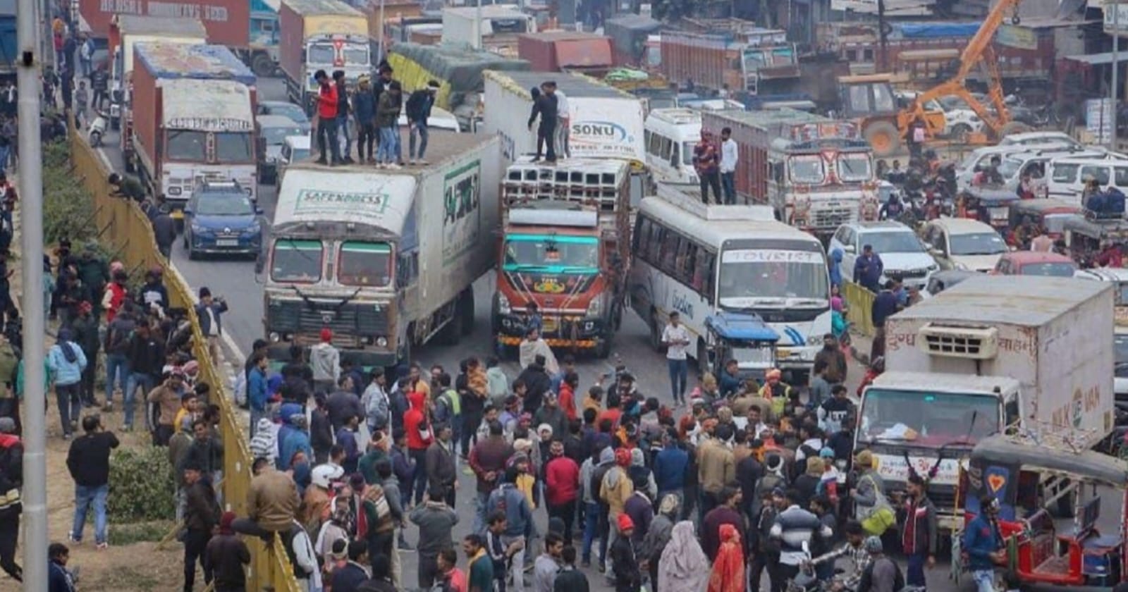 প্রতিবেদন : আইন দেশের মানুষের ভালর জন্য হওয়া উচিত। আইন কোনওদিন নিপীড়নের মাধ্যম হওয়া উচিত নয়। সম্প্রতি কেন্দ্রীয় সরকার যে বিল এনেছে তার তীব্র প্রতিবাদে উত্তাল গোটা দেশ। দেশের মানুষের উপর নিপীড়ন হয়ে উঠবে এই আইন (Criminal Law Bill)। কায়েম হতে পারে পুলিশি রাজ। এই স্বৈরাচারী কালো আইনের মধ্যে যদি কোনও পথ দুর্ঘটনা হয়ে কারও মৃত্যু হয় তাহলে ট্রাক ড্রাইভারদের ১০ বছর জেল ও ৭ থেকে ১০ লাখ টাকা জরিমানা করা হবে। তার জন্যই দেশ জুড়ে ট্রাক চালকরা পথ অবরোধ করছেন। অগ্নিগর্ভ পরিস্থিতি বিজেপিশাসিত রাজ্যগুলিতেও। ট্রাক চালকদের বিক্ষোভ-প্রতিবাদে ব্যাপক গণ্ডগোল উত্তরপ্রদেশ, মধ্যপ্রদেশ, হরিয়ানা, জম্মু ও কাশ্মীর, রাজস্থান, মহারাষ্ট্র, গুজরাত, ছত্তিশগড়, পাঞ্জাব, উত্তরাখণ্ড-সহ বিভিন্ন রাজ্যে। পরিস্থিতি যেদিকে এগোচ্ছে, তাতে আরও খারাপ হতে পারে। এর মধ্যে উত্তরপ্রদেশ থেকে ব্যাপক গণ্ডগোলের খবর আসছে। ধর্মঘট সামলাতে আন্দোলনকারীদের দিকে গুলি চালিয়েছেন যোগীর পুলিশ৷