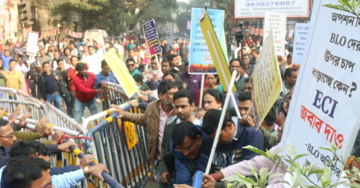 প্রতিবেদন : বারবার অ্যাপের নিয়ম বদল। বদল করা হচ্ছে একাধিক নির্দেশেরও। এর জেরেই বিভ্রান্ত হচ্ছেন বিএলওরা (BLO)। একই সঙ্গে মানসিক চাপ বাড়ছে। এই একাধিক অভিযোগের প্রতিবাদে সোমবার রাজ্য সিইও দফতরের সামনে বিএলওদের একটা বড় অংশ জমায়েত করেন। তাঁদের সহযোগিতায় শামিল ছিল বিএলও অধিকার রক্ষা কমিটি।