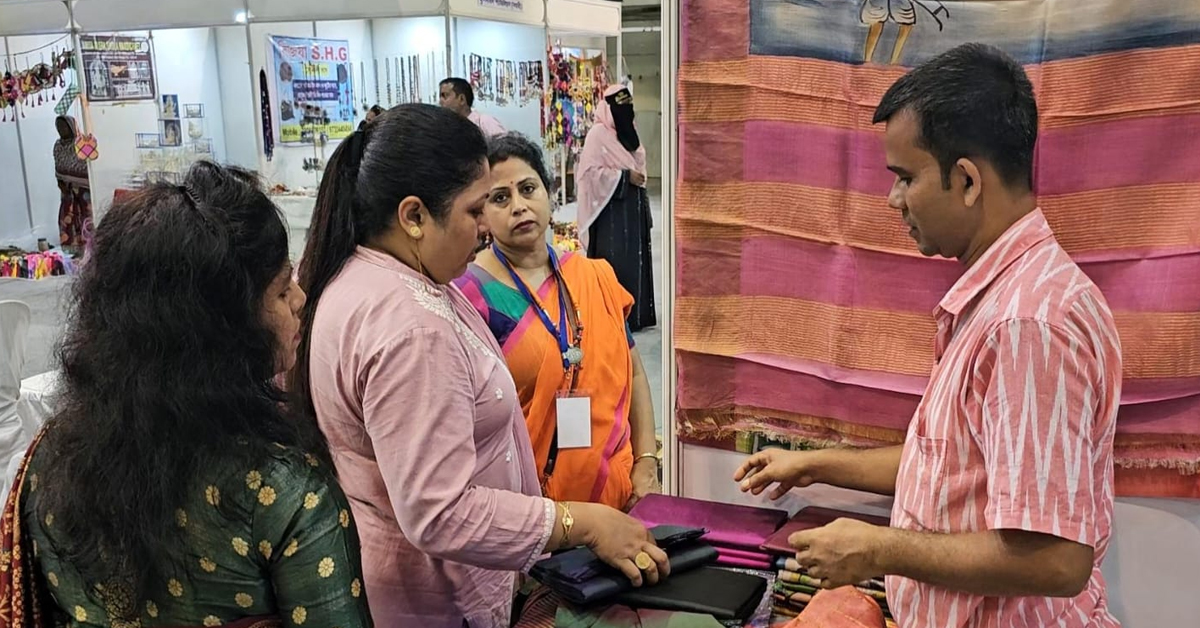 বিক্রি বেশি মেলাতেই (Mela)। মিলছে নগদ টাকা। লাভবান হচ্ছেন বাংলার হস্তশিল্পীরা। গ্রামীন হস্তশিল্পীদের রোজগার বৃদ্ধিতে উদ্যোগ নিয়েছেন মুখ্যমন্ত্রী। রাজ্যের উদ্যোগে আয়োজন করা হচ্ছে মেলা, প্রদর্শনীর। মুখ্যমন্ত্রীর দেখানো পথেই পুজোর মেলার আয়োজন করেছিল বিএনসিসিআই। ক্ষুদিরাম অনুশীলন কেন্দ্রে বসেছিল সেই মেলা। রাজ্যের ১৬টি জেলা থেকে হস্তশিল্পীরা এসেছিলেন। রেকর্ড বিক্রির কারণে একমুখ হাসি নিয়ে ফিরেছেন শিল্পীরা। মেলায় ৭২টি স্টলের মধ্যে ছিল হাতে একটি শাড়ির স্টল। নানা রঙের নকসা করা সেই শাড়ি দেখে চোখ থামতে বাধ্য। প্রত্যেকটি শাড়িরই হল হাতে বোনা তসর। লাল, নীল, হলুদের নকসায় বোনা তসরের সম্ভার নিয়ে এসেছিলেন গুরুপদ ভালকুন্দি। বীরভূমের রামপুরহাটের ২ নম্বর ব্লকের বিষ্ণুপুর পঞ্চায়েতের নতুনগ্রামের বাসিন্দা তিনি। এইগ্রামে প্রত্যেকটি বাড়িতেই রয়েছে তাঁত। পাওয়ারলুম নেই, সবই হ্যান্ডলুম অর্থাৎ হস্তচালিত তাঁত। মহিলা, পুরুষ এই গ্রামের বেশিরভাগ বাসিন্দাই তাঁত শিল্পের সঙ্গে যুক্ত বলে জানালেন গুরুপদ।